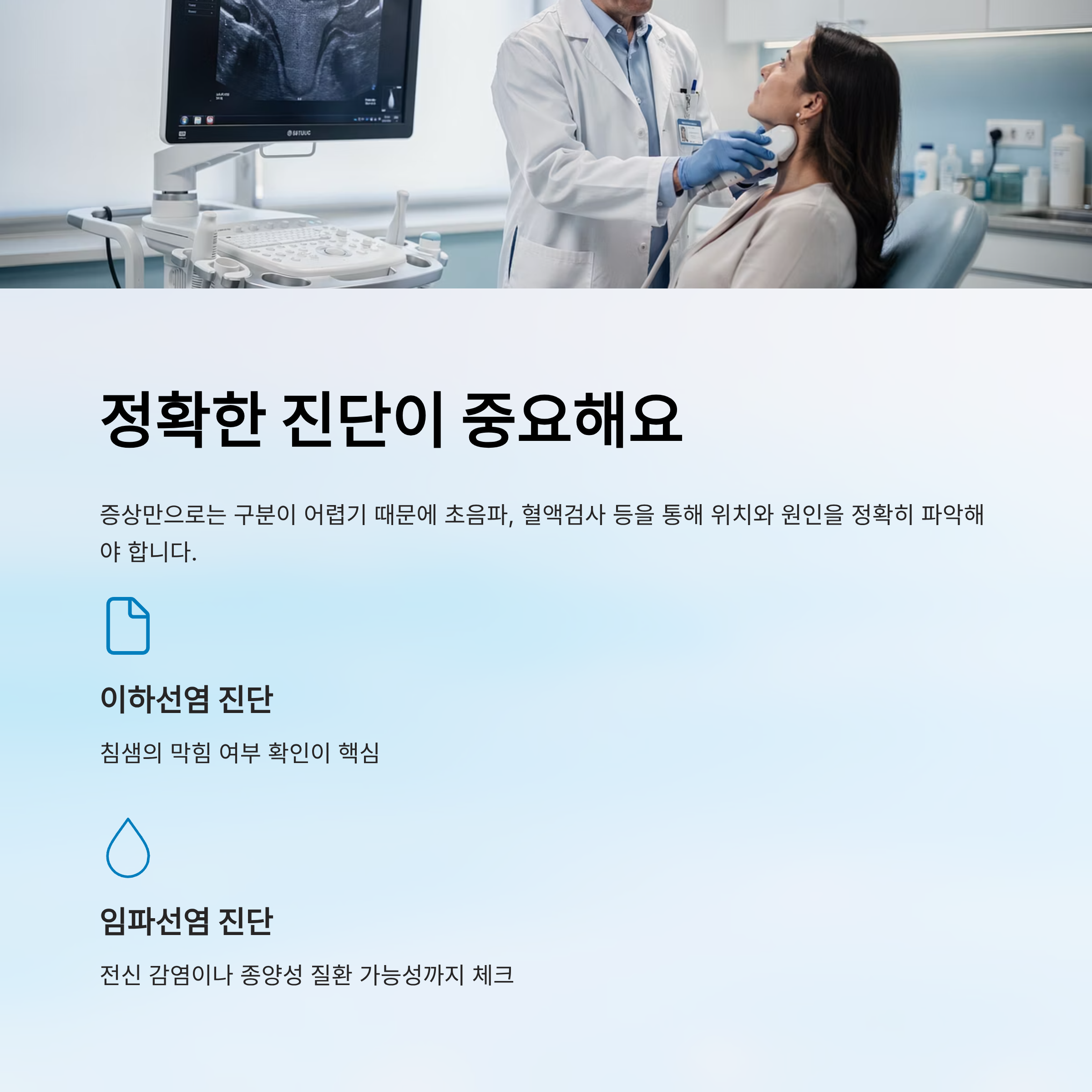 임파선염은 전신적인 감염 여부나 종양성 질환 가능성까지 확인하는 것이 핵심입니다.