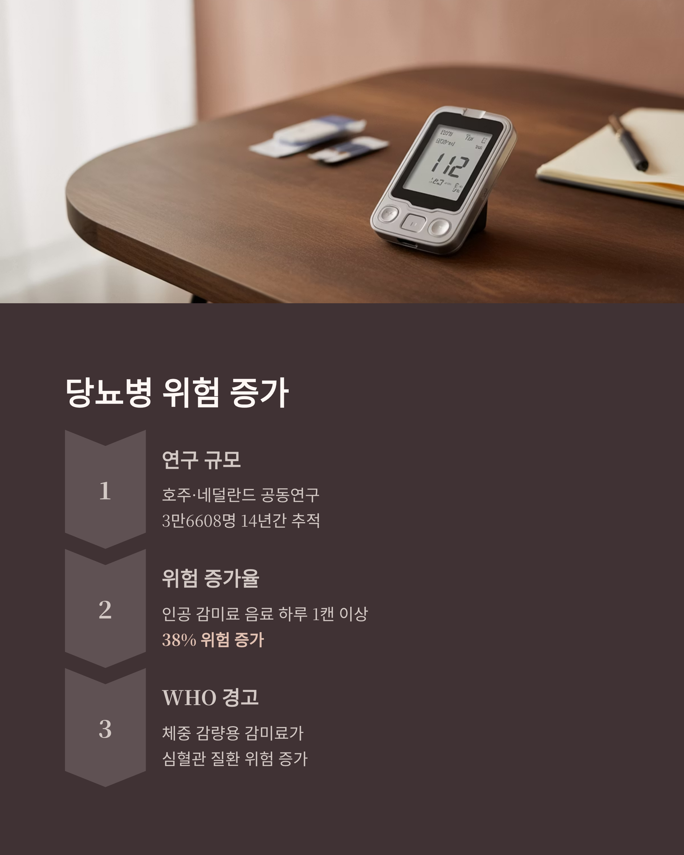 설탕 음료도 위험을 높이지만(23% 증가), 인공 감미료 역시 대사 건강을 완전히 보호해주지는 않는다는 사실이 확인된 셈입니다.