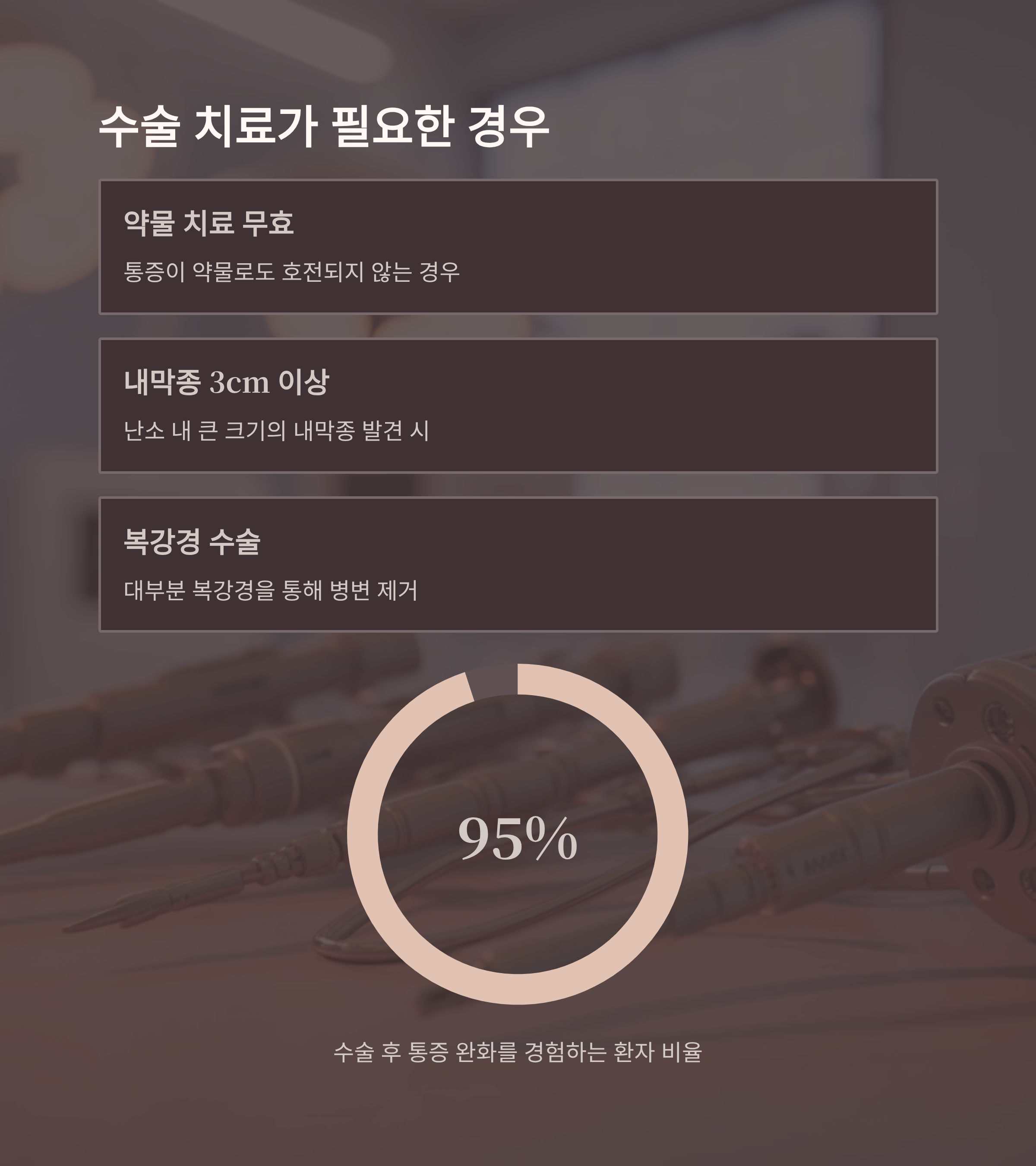 수술 권장 조건 난소 내막종 3cm 이상 또는 약물 반응 없는 통증