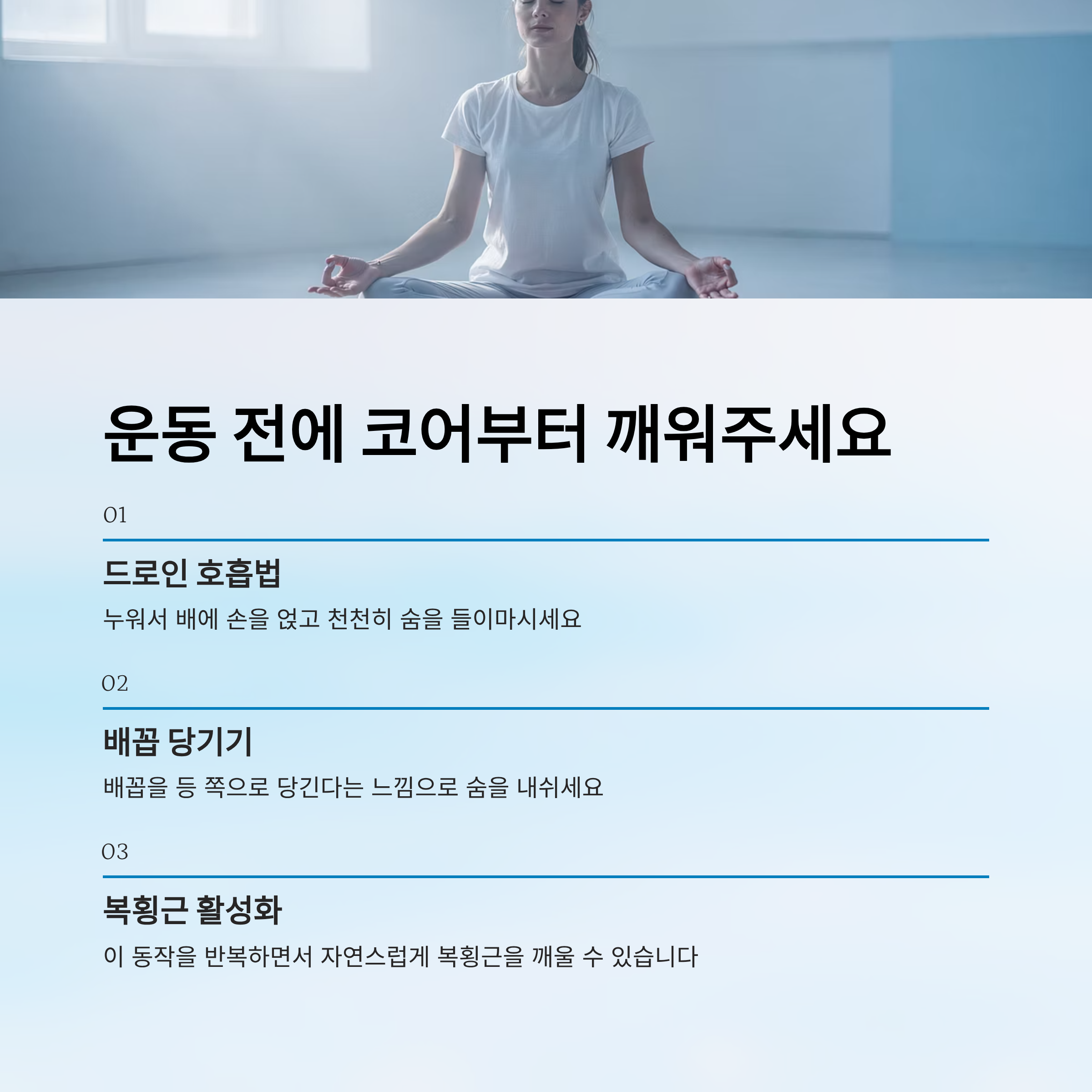 운동 전에 간단한 코어 워밍업을 꼭 진행해 주세요.