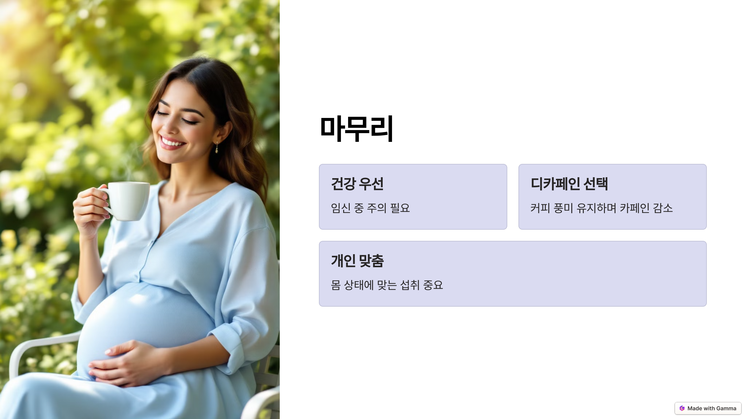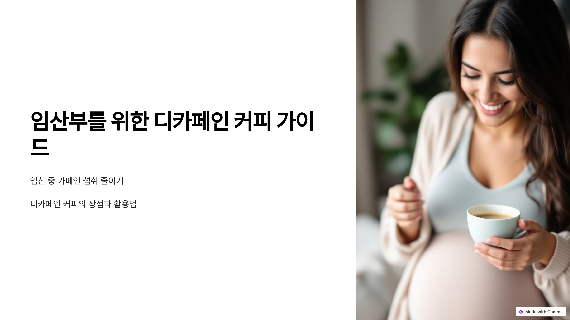 임신은 새로운 생명을 맞이하는 기쁜 시간이지만, 자신의 건강과 태아의 건강을 위해 많은 주의가 필요한 시기입니다. 디카페인 커피는 이러한 시기에 커피의 풍미를 포기하지 않으면서도 카페인 섭취를 줄일 수 있는 좋은 대안이 될 수 있습니다. 그러나 무엇보다 중요한 것은 자신의 몸 상태에 맞춰 적절하게 섭취하는 것입니다. 오늘 소개해드린 정보가 임산부 여러분께 도움이 되길 바라며, 앞으로도 건강하고 행복한 임신 기간 보내시길 바랍니다. 감사합니다!