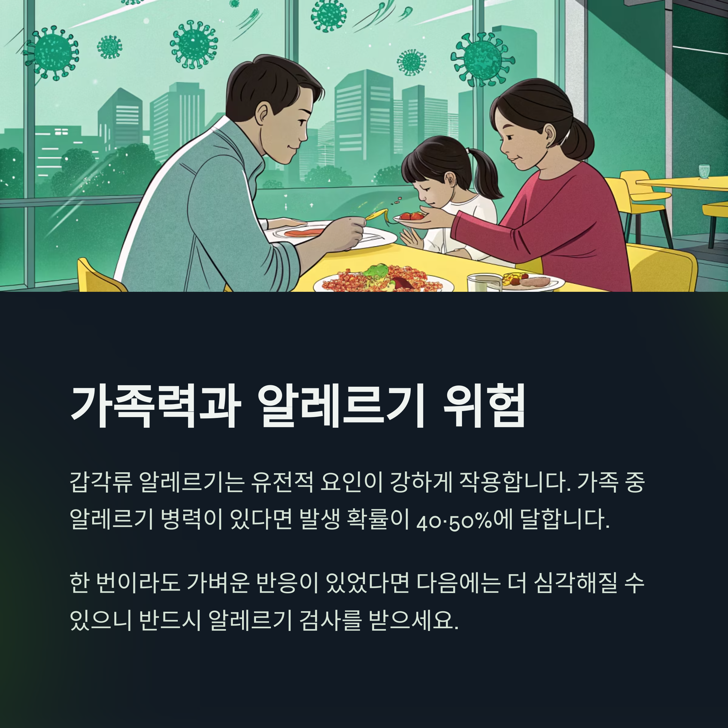 갑각류 알레르기는 단순한 음식 알레르기가 아닙니다. 새우, 게, 가재 등 갑각류를 섭취하거나 조리 중 발생하는 단백질에 의해 면역 반응이 유발되며, 초기 증상인 입술 붓기를 방치하면 치명적인 아나필락시스로 빠르게 진행될 수 있습니다. 본 글에서는 갑각류 알레르기의 위험성과 증상, 통계, 예방법을 상세히 안내드립니다.