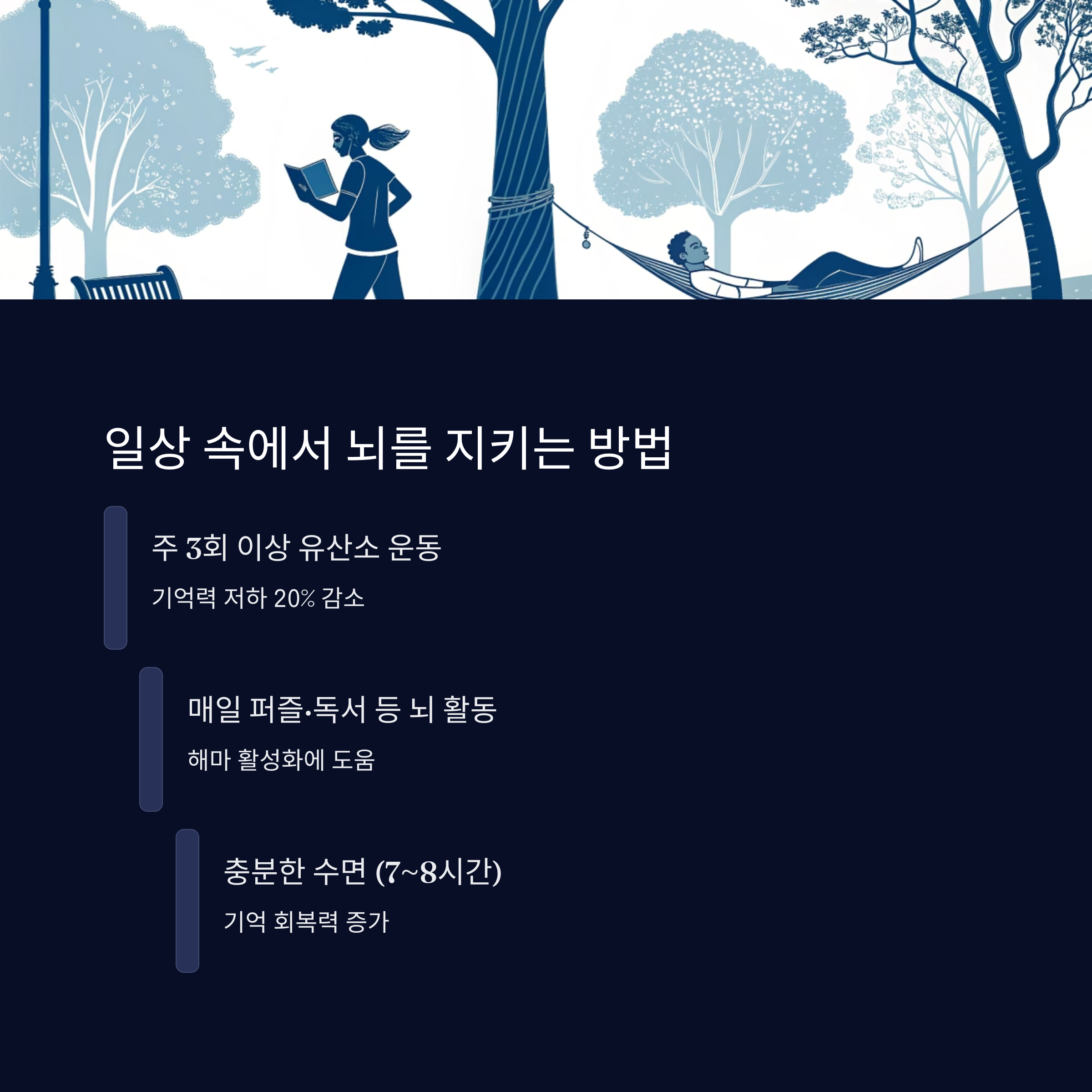 | 매일 퍼즐·독서 등 뇌 활동 | 해마 활성화 |