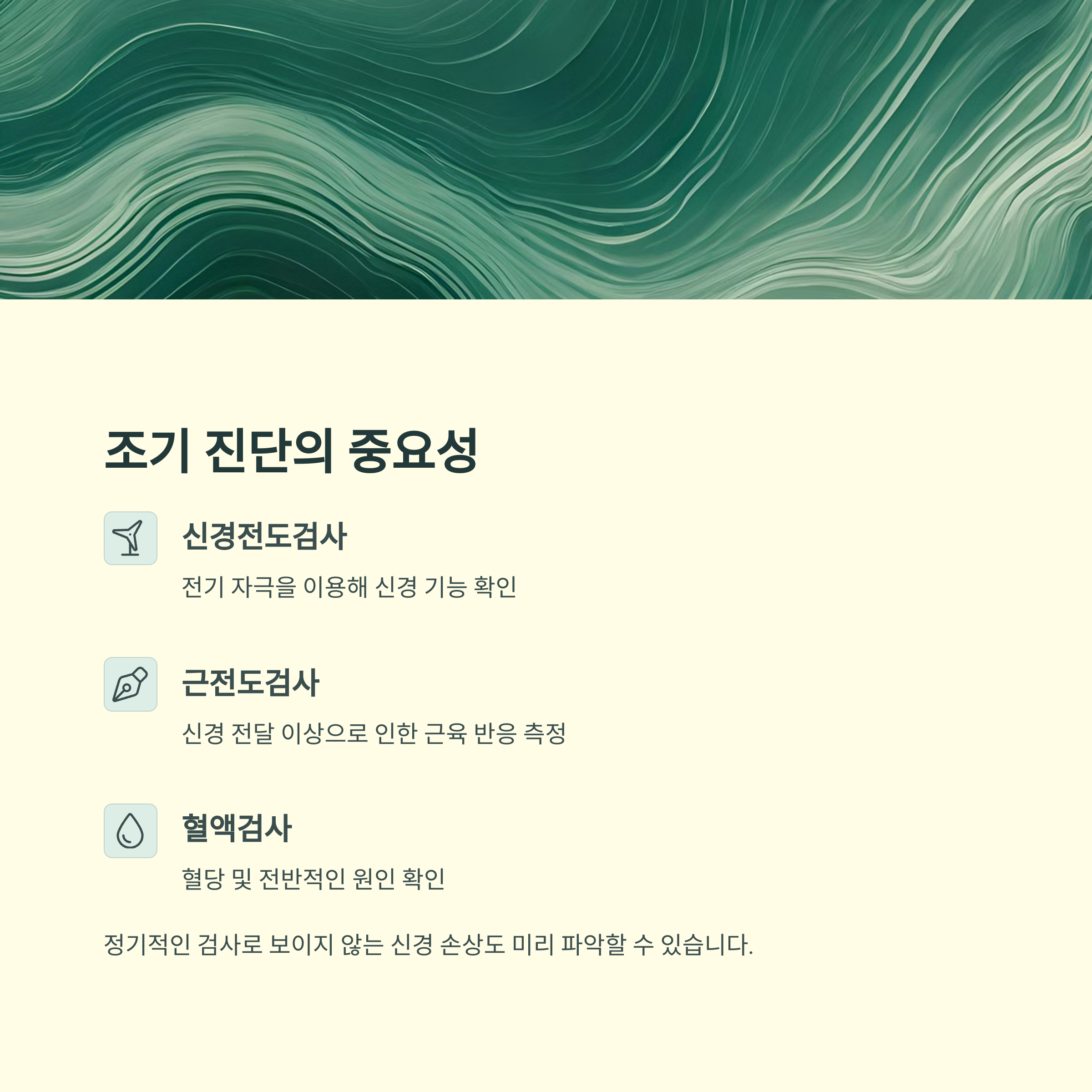 정기적인 검사를 통해 보이지 않는 신경 손상도 미리 파악할 수 있습니다.