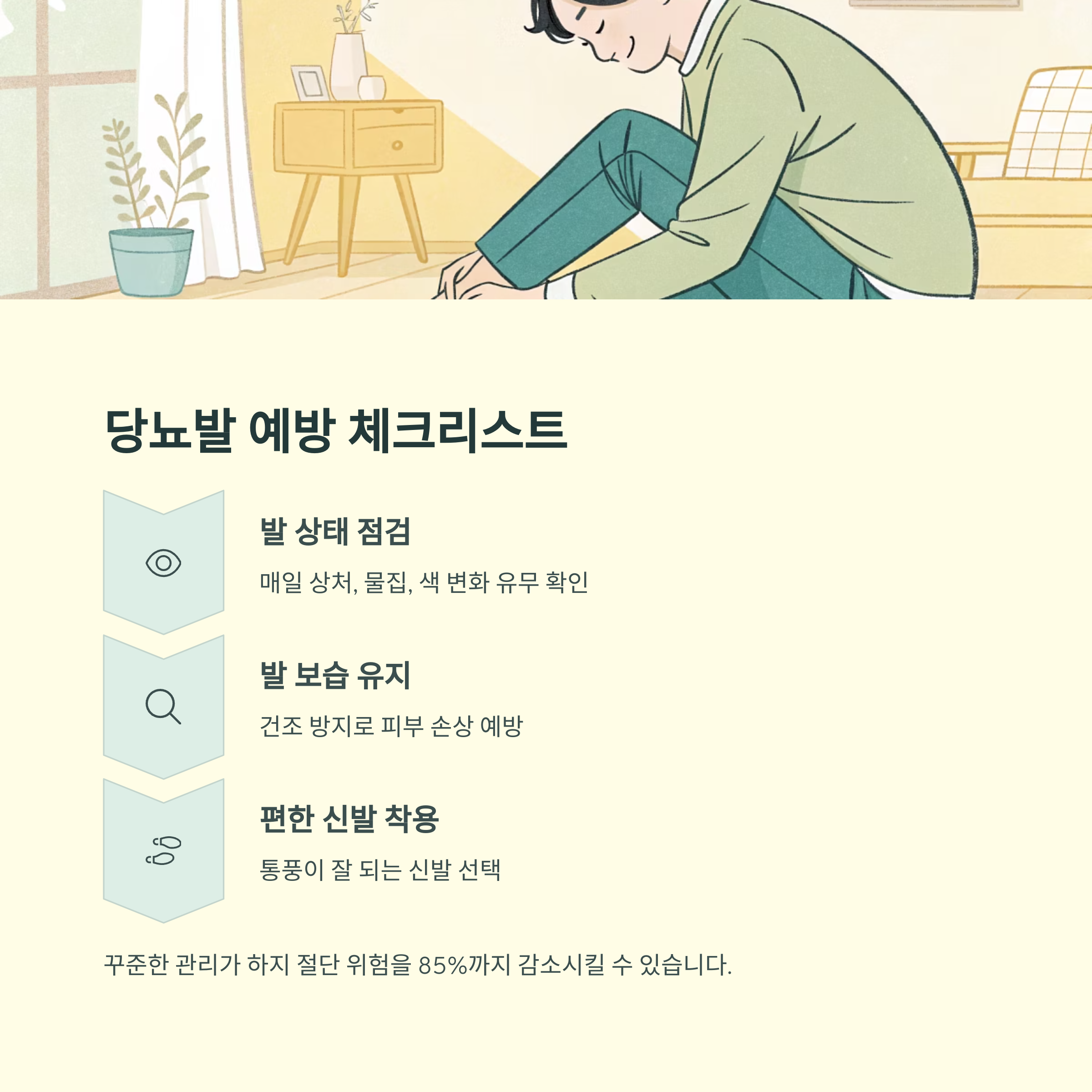 꾸준한 관리가 하지 절단 위험을 85%까지 감소시킬 수 있습니다.