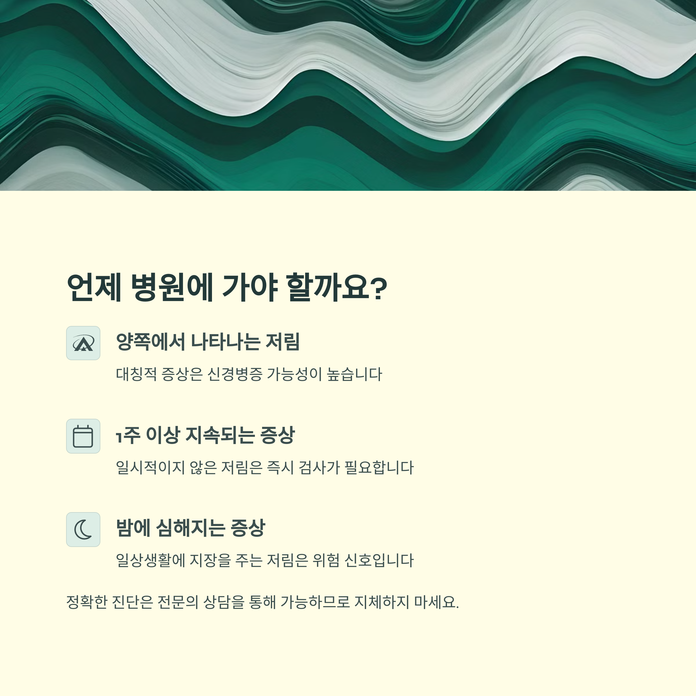 • 반복되는 저림 증상은 정확한 검사를 통해 원인을 확인