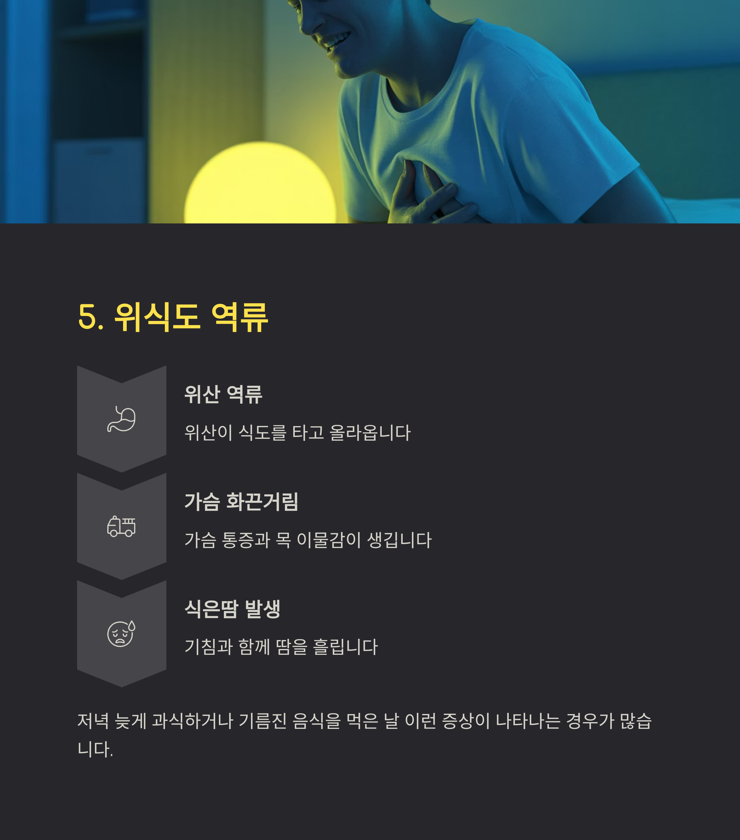 5. 위식도 역류(역류성 식도염) 증상일 수도 있습니다