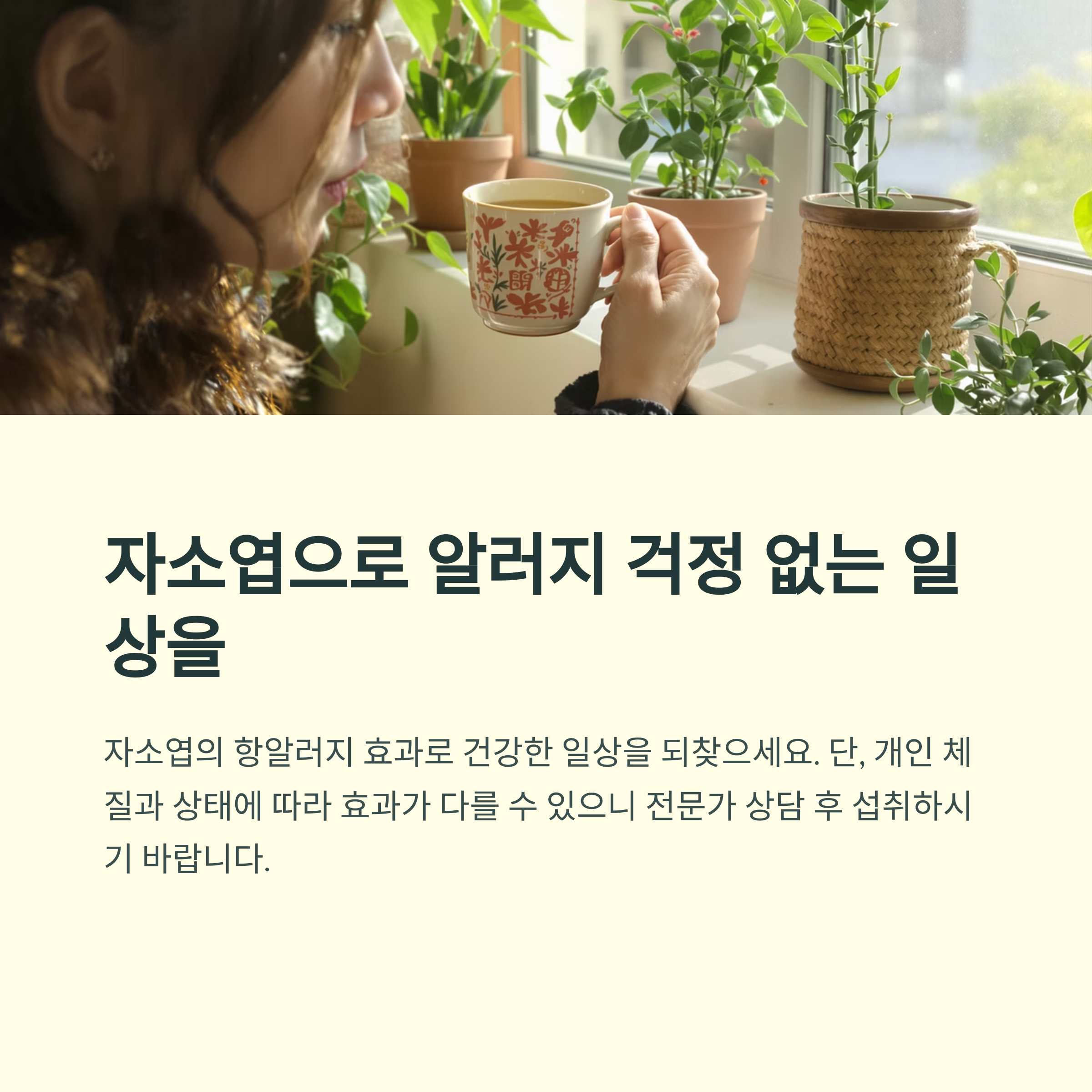 | 자소엽 항알러지 효능 | 염증 억제, 면역 반응 조절로 알러지 완화 |