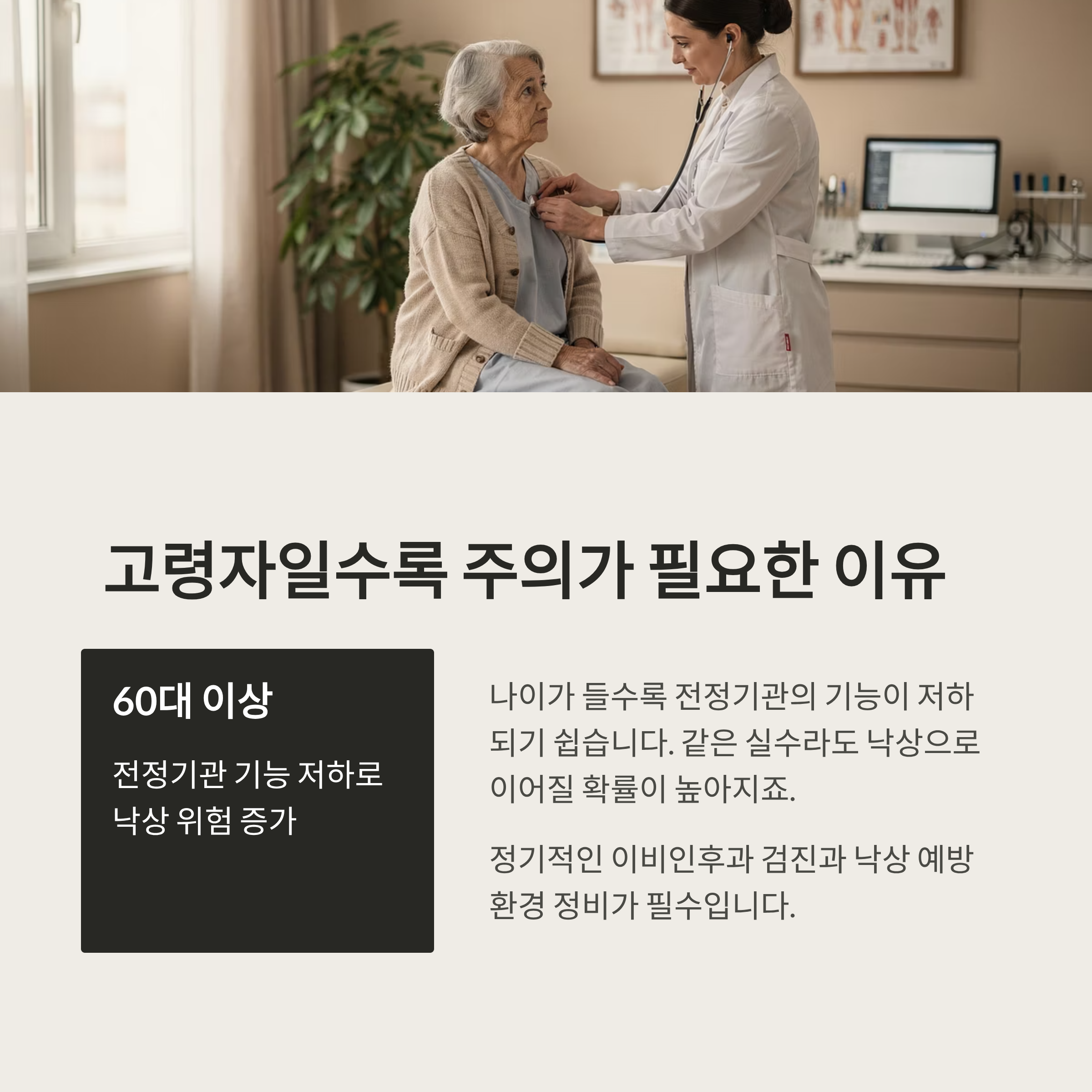 정기적인 이비인후과 검진과 낙상 예방 환경 정비가 필수입니다.