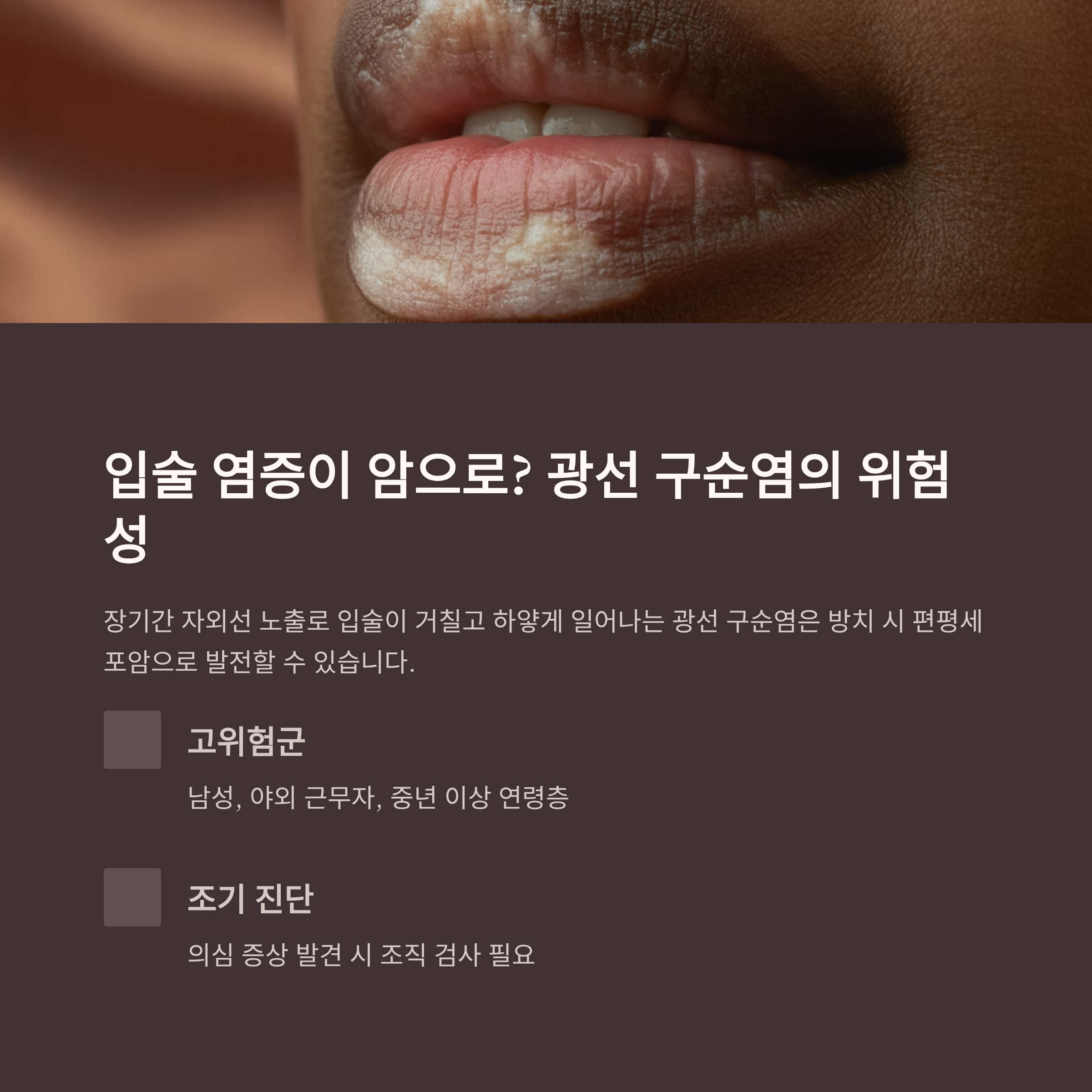 또한 광선 구순염은 자외선에 지속적으로 노출되어 생기는