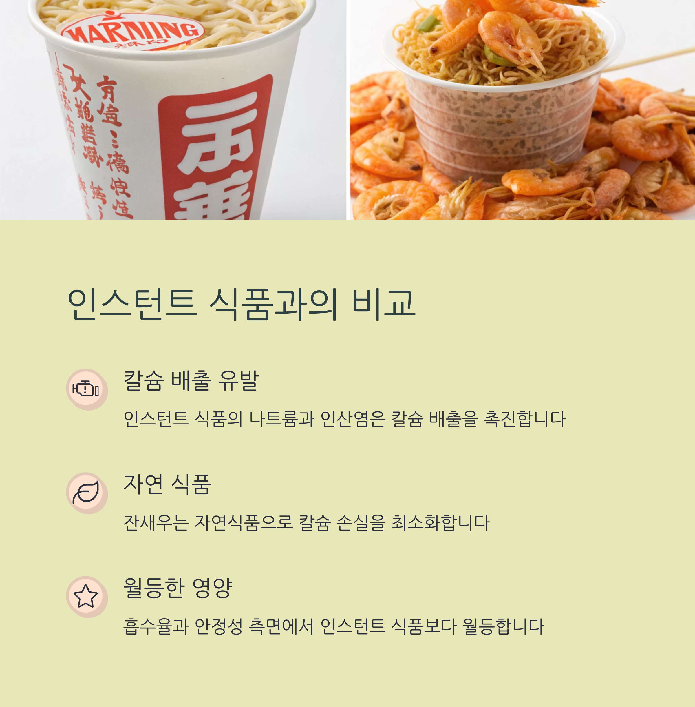 "자연에서 온 잔새우, 칼슘은 더 흡수되고 배출은 줄어듭니다!" 🍤