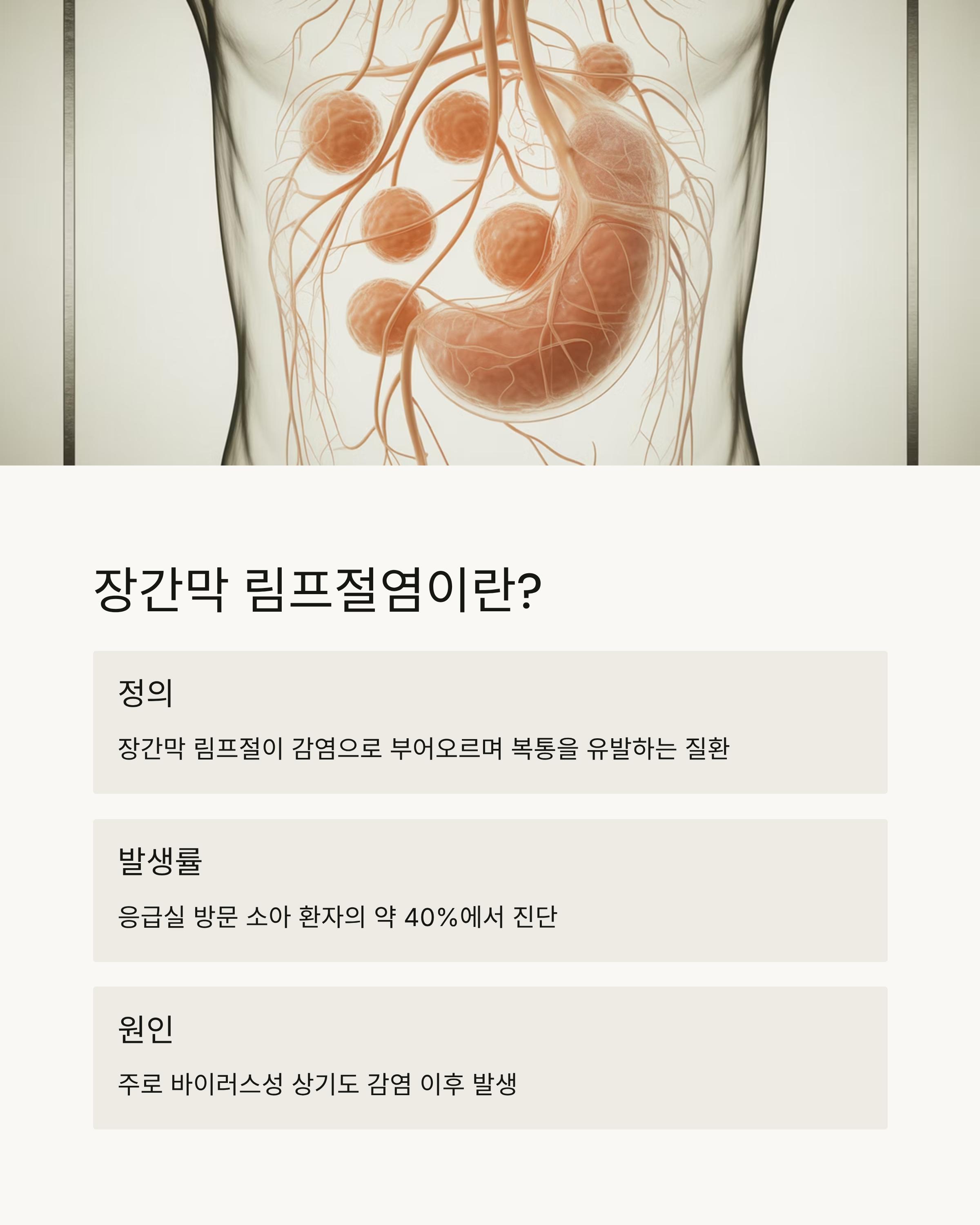 장간막 림프절염은 단순한 복통으로 시작하지만, 놓치면 수술이 필요한 중증 질환으로 발전할 수 있습니다.