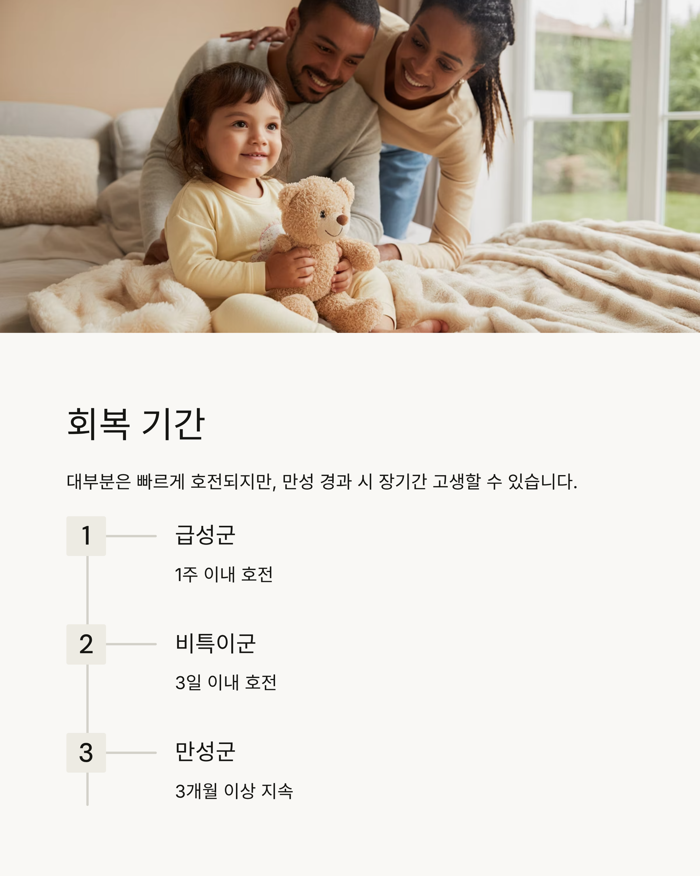 대부분은 1주~2주 내 호전 그러나 놓치면 3개월 이상 고생!
