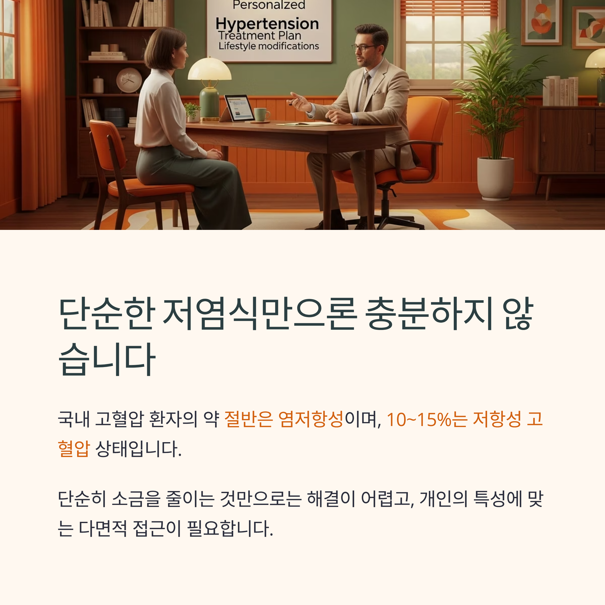 단순한 저염식보다는 포괄적인 생활습관 개선이 필요합니다.