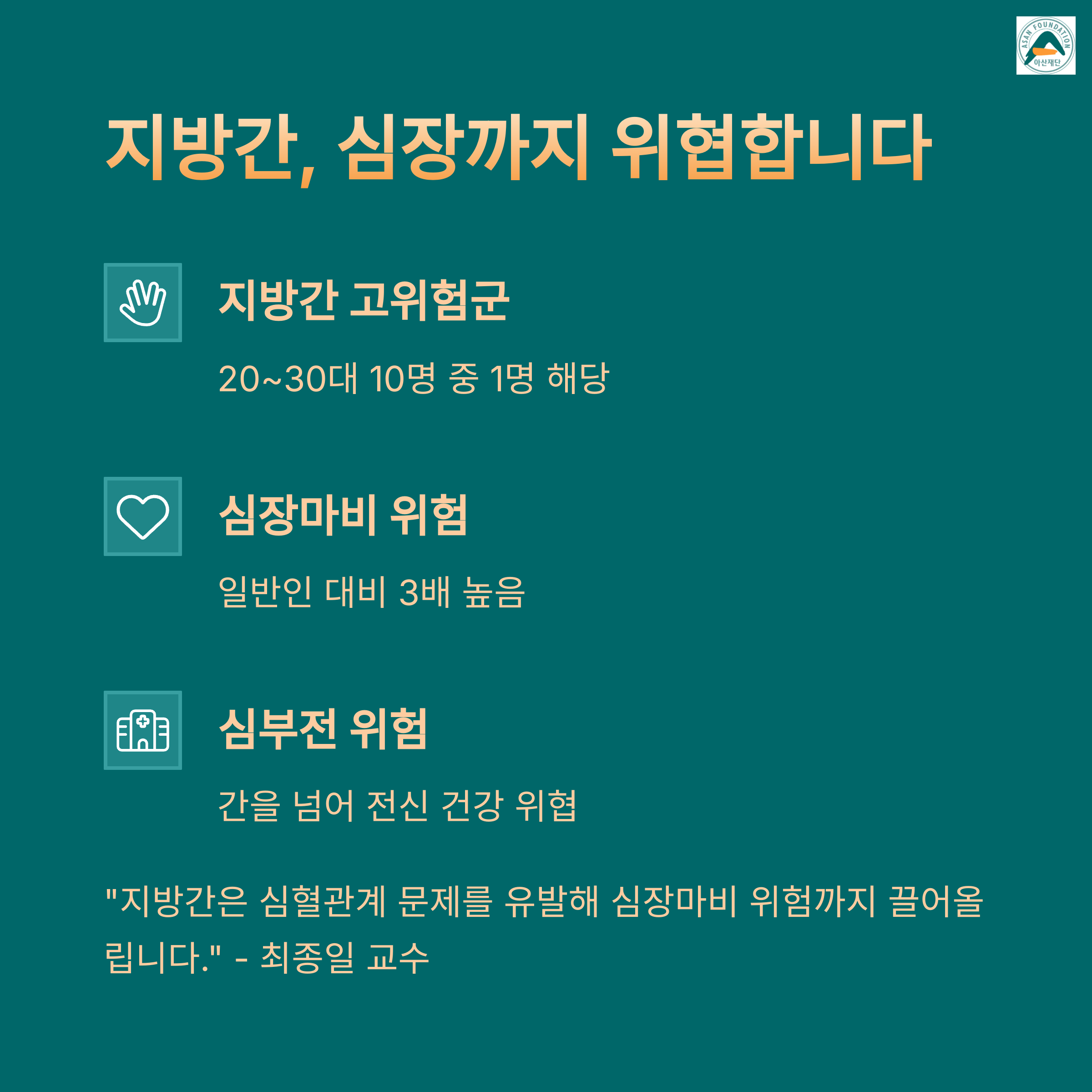 특히, 단순한 간 질환이 아닌 심근경색, 심부전 등과 직결되므로