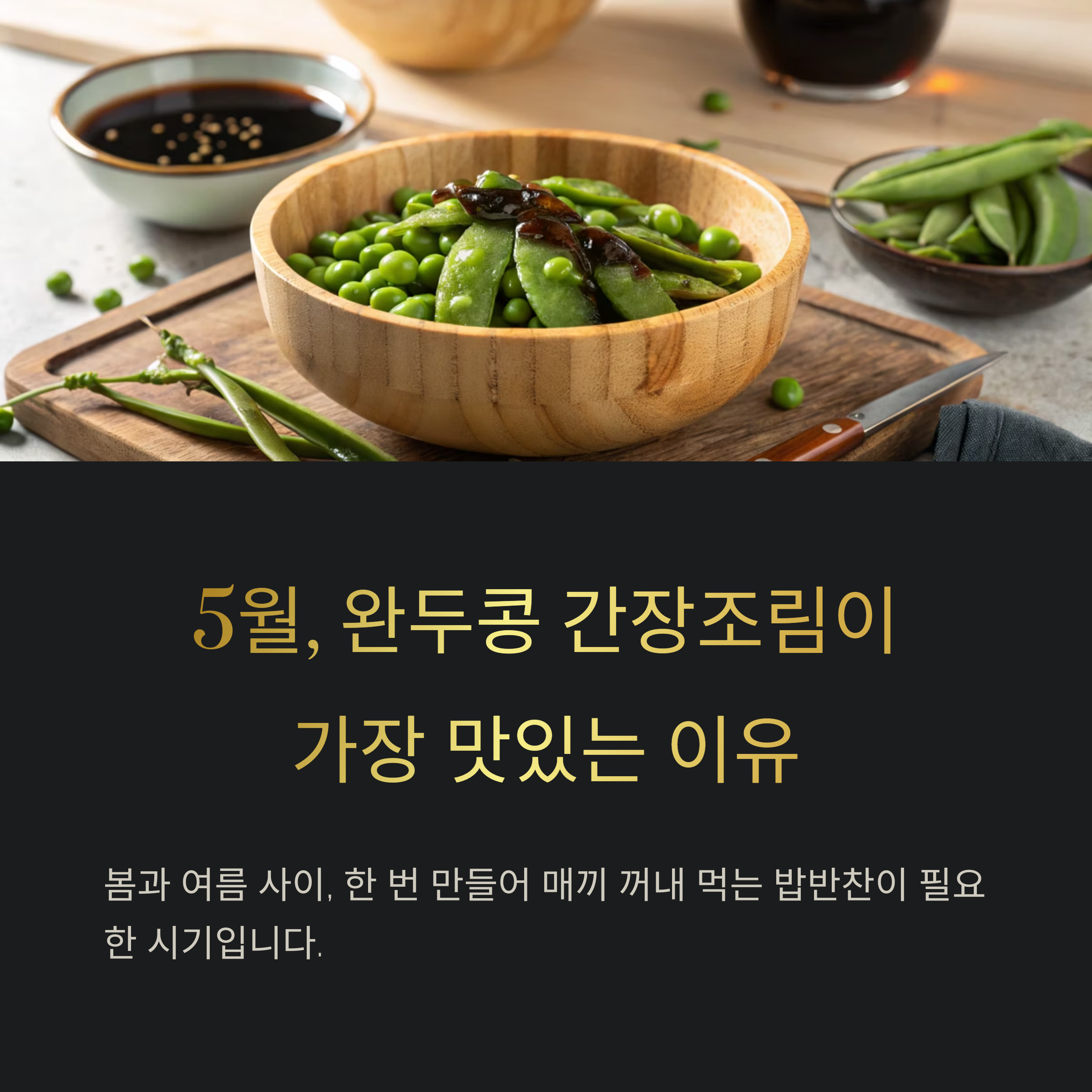 그중에서도 완두콩 간장조림은 맛과 영양, 보관성 모두를 갖춘 5월 대표 반찬으로 꼽힙니다.