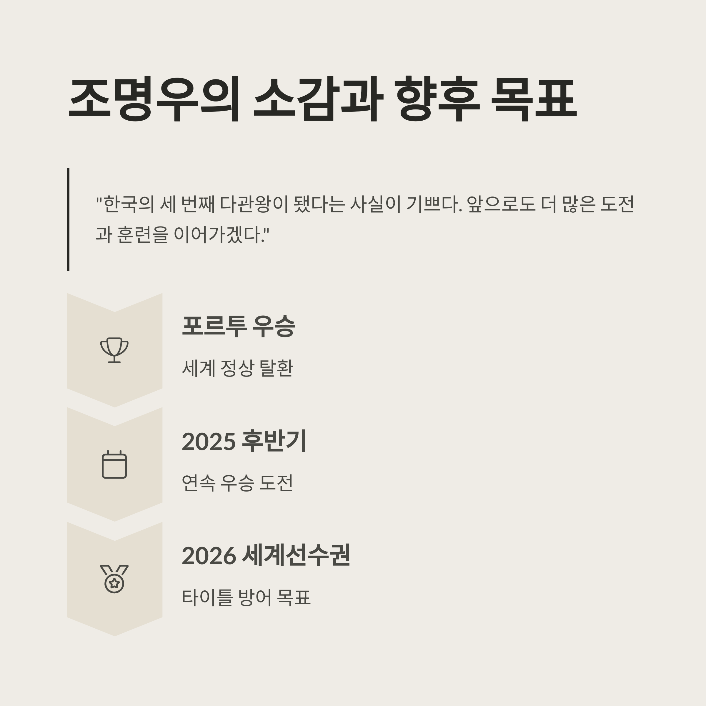 조명우의 이번 포르투 월드컵 우승은 단순한 승리가 아니라 세계 무대에서의 입지를 다시 한 번 증명하는 무대였습니다.