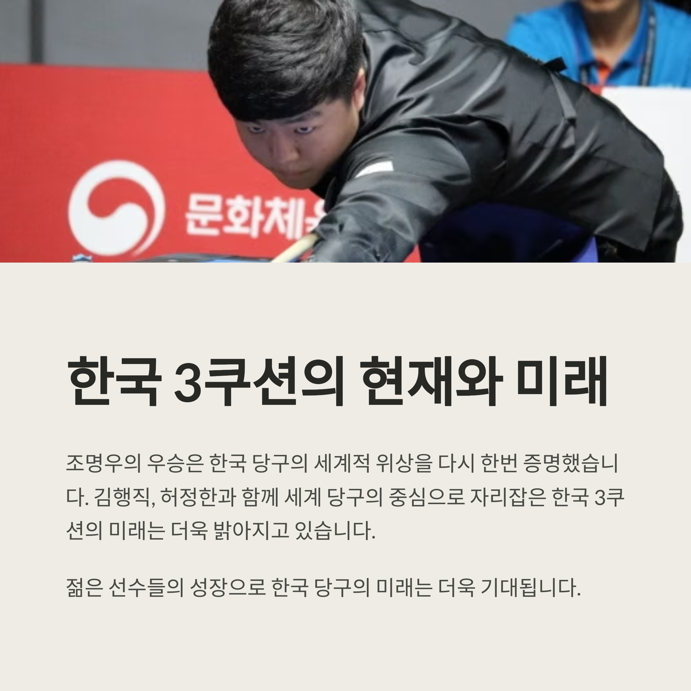 특히 젊은 선수들의 성장과 함께 한국 당구의 미래도 더욱 밝아지고 있습니다.