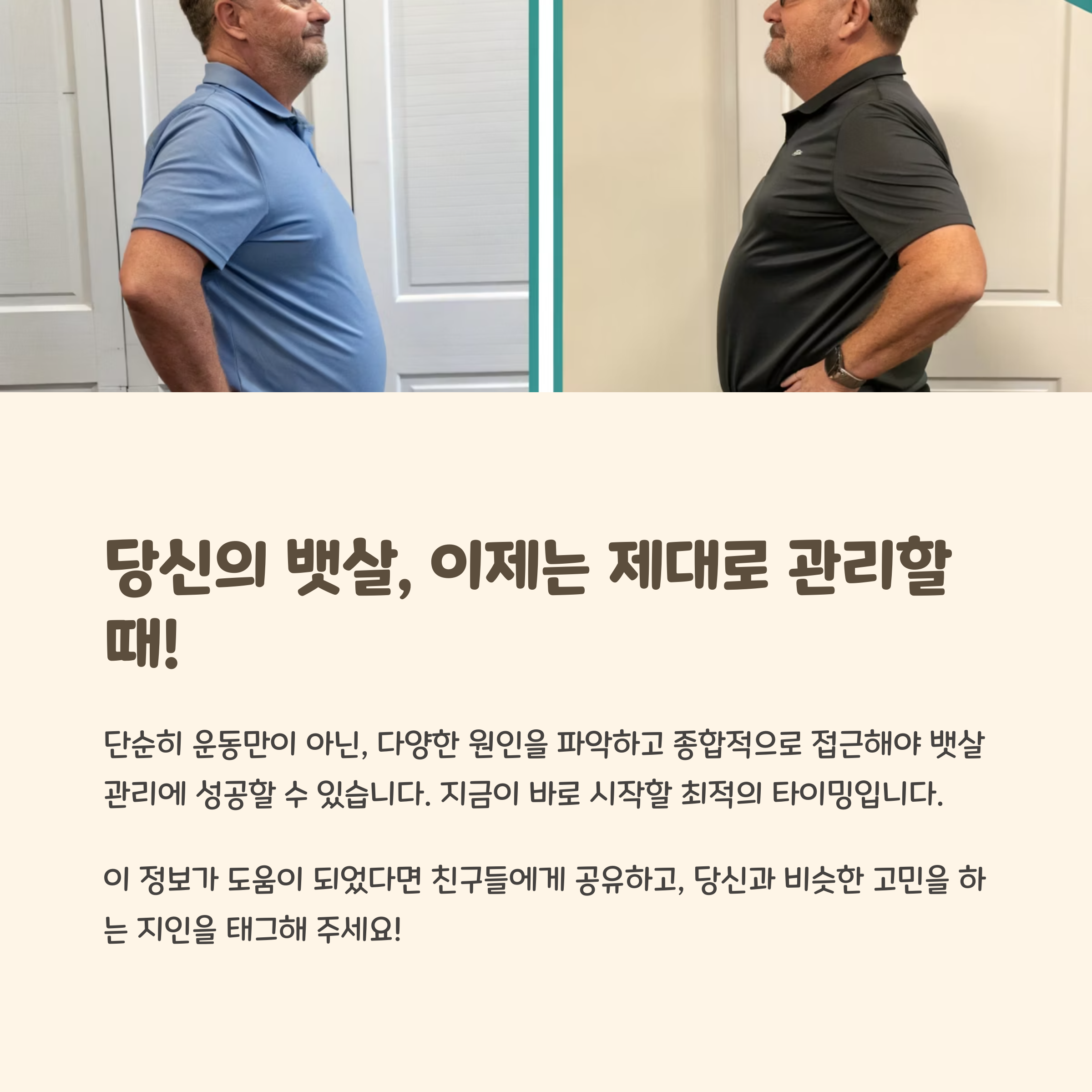 "지금 바로 작은 습관부터 시작하면, 중년의 뱃살은 충분히 관리할 수 있습니다."
