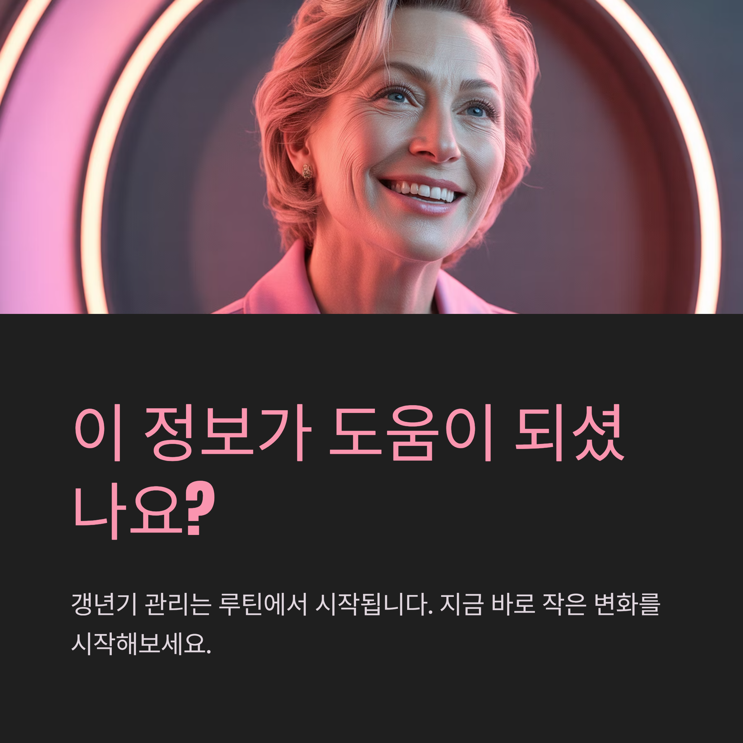 실제로 새로운 루틴을 실천한 여성들의 삶의 만족도는 갱년기 전보다 20~30%가량 향상되었다는 글로벌 QoL 지표도 나와 있습니다.