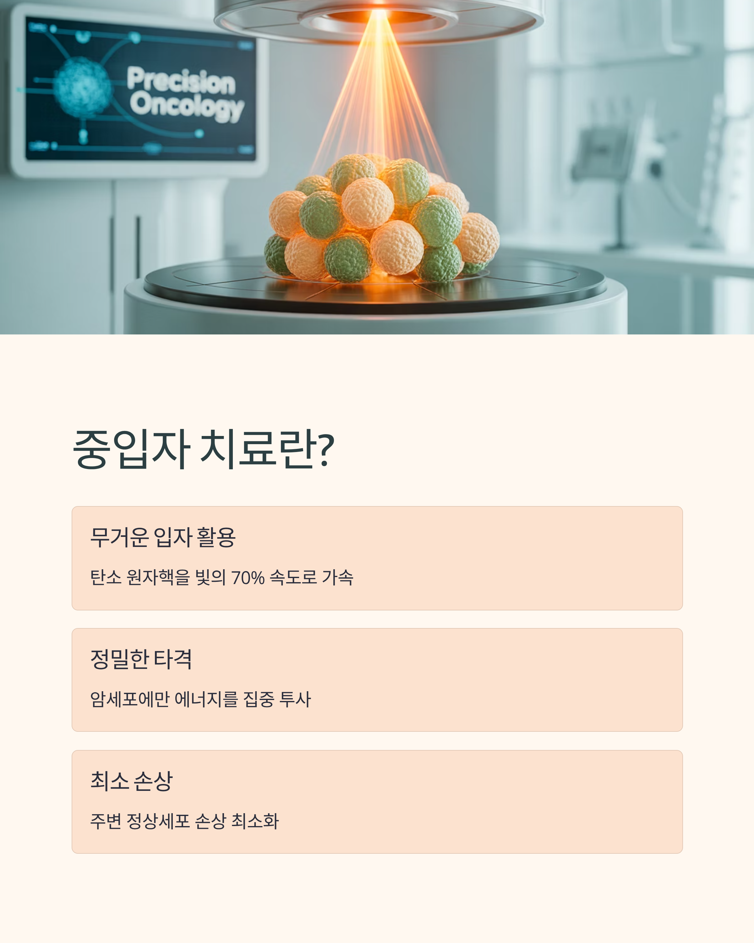 중입자 치료는 말 그대로 ‘무거운 입자’를 이용한 암 치료 방식입니다.