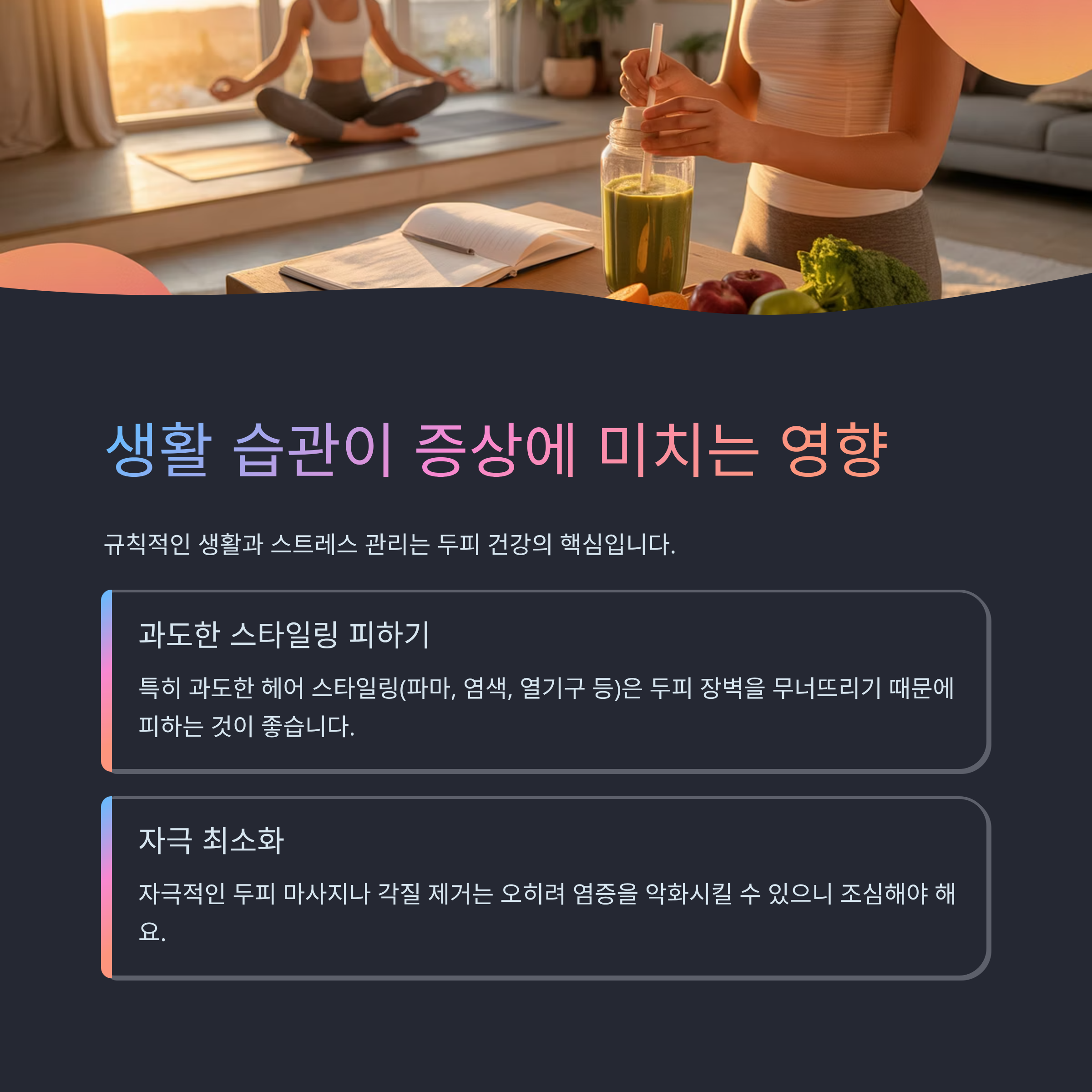 규칙적인 생활과 스트레스 관리는 두피 건강의 핵심입니다.