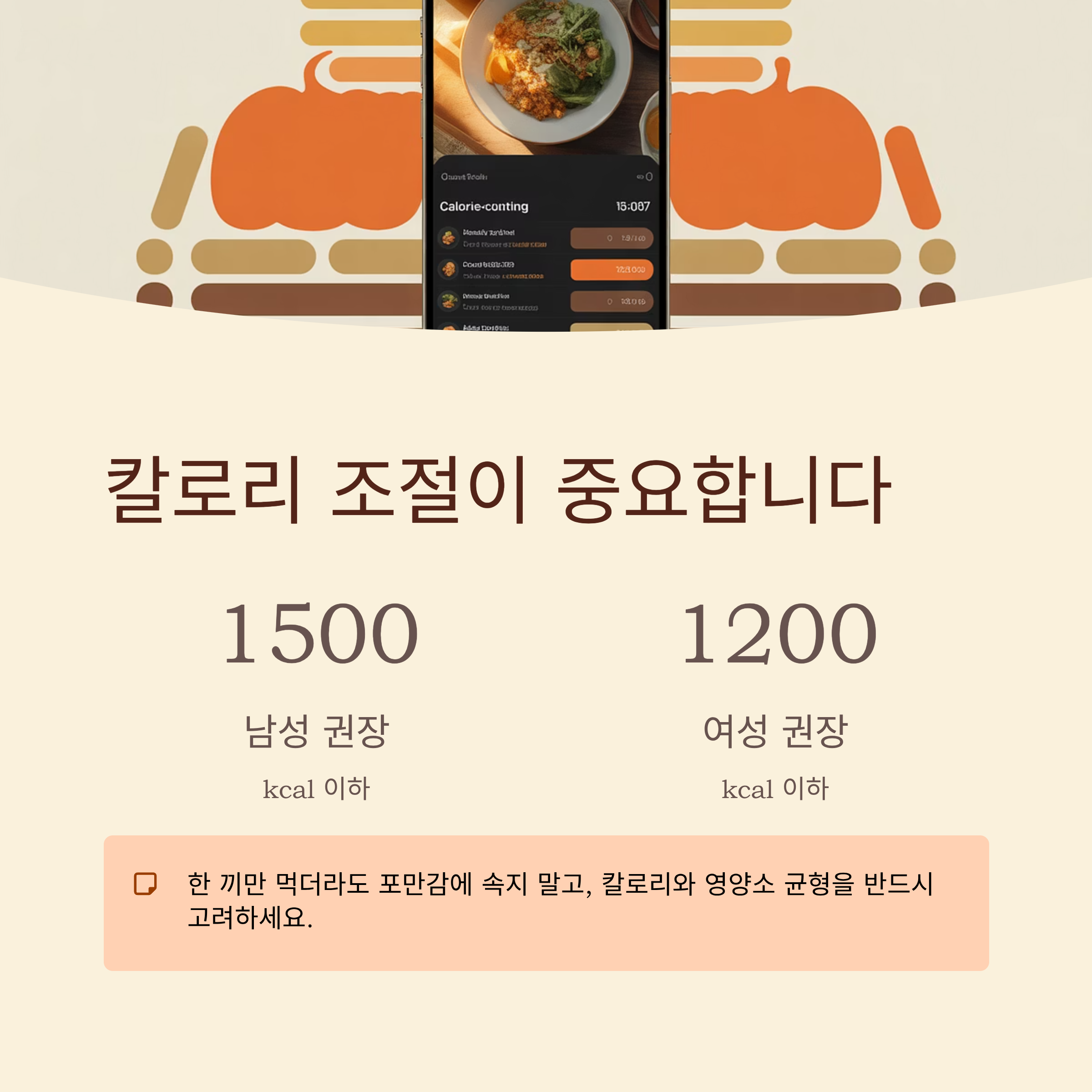 칼로리 조절, 남성 1500kcal 이하·여성 1200kcal 이하