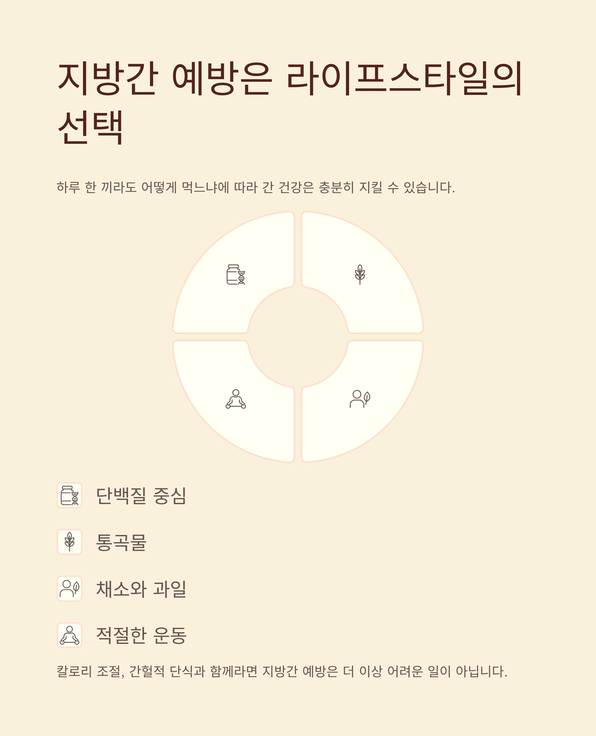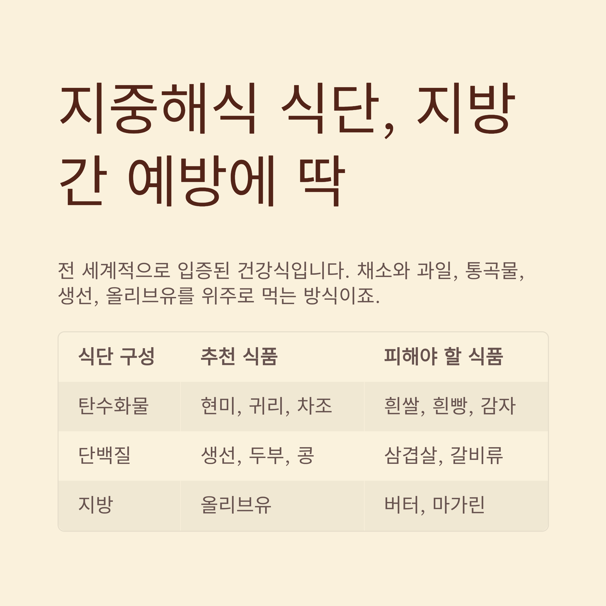 지방간은 초기에 증상이 없어 방치되기 쉬운 만큼, 매일의 식단과 생활습관 관리가 무척 중요합니다. 특히 과식을 피하고, 단백질 위주의 식사로 포화지방과 당류를 줄이는 것이 핵심인데요. 오늘은 하루 한 끼 식단으로도 충분히 지방간을 예방할 수 있는 방법을 정리해드립니다. 식단 구성, 추천 음식, 주의사항까지 함께 살펴보세요.