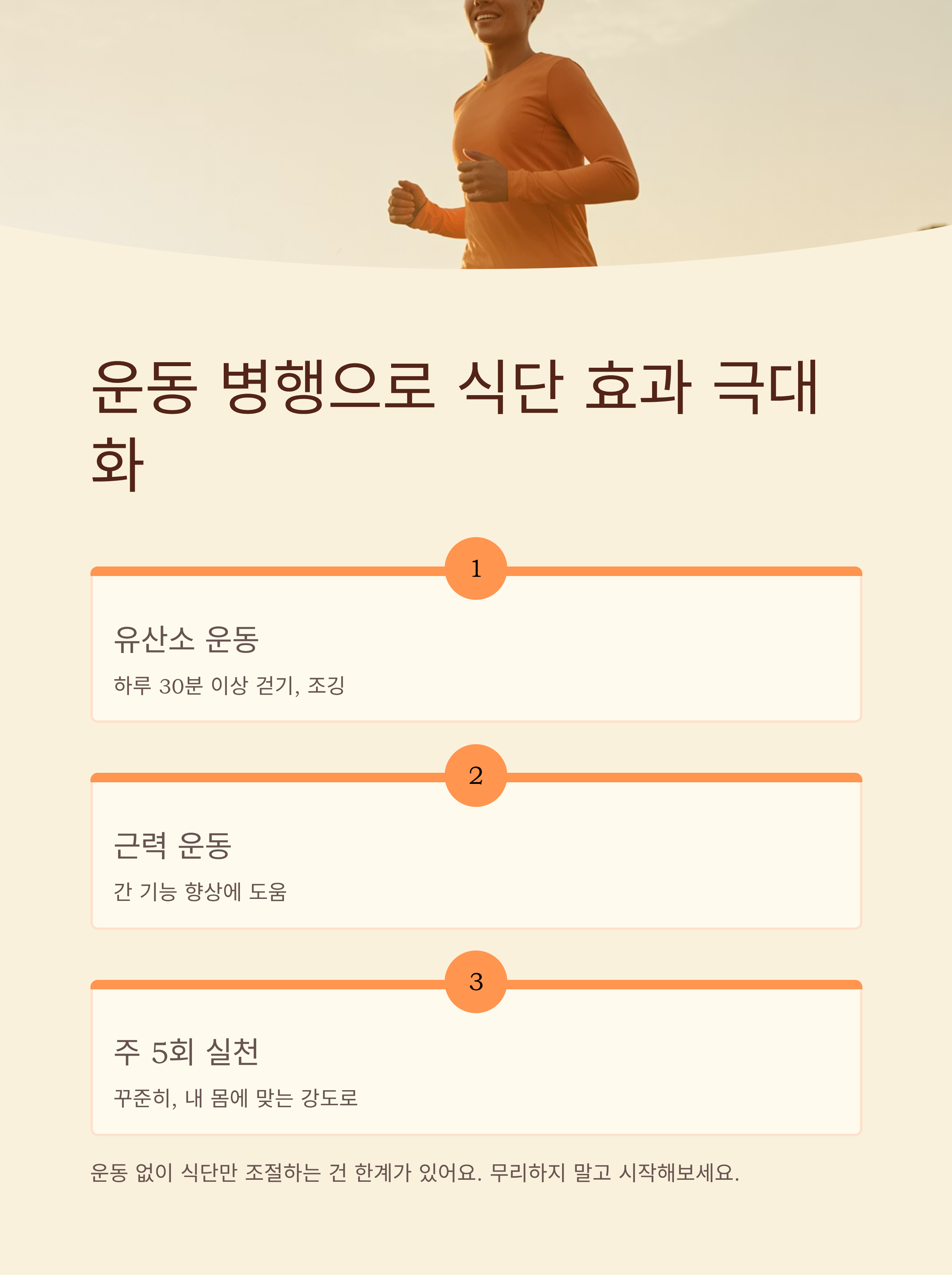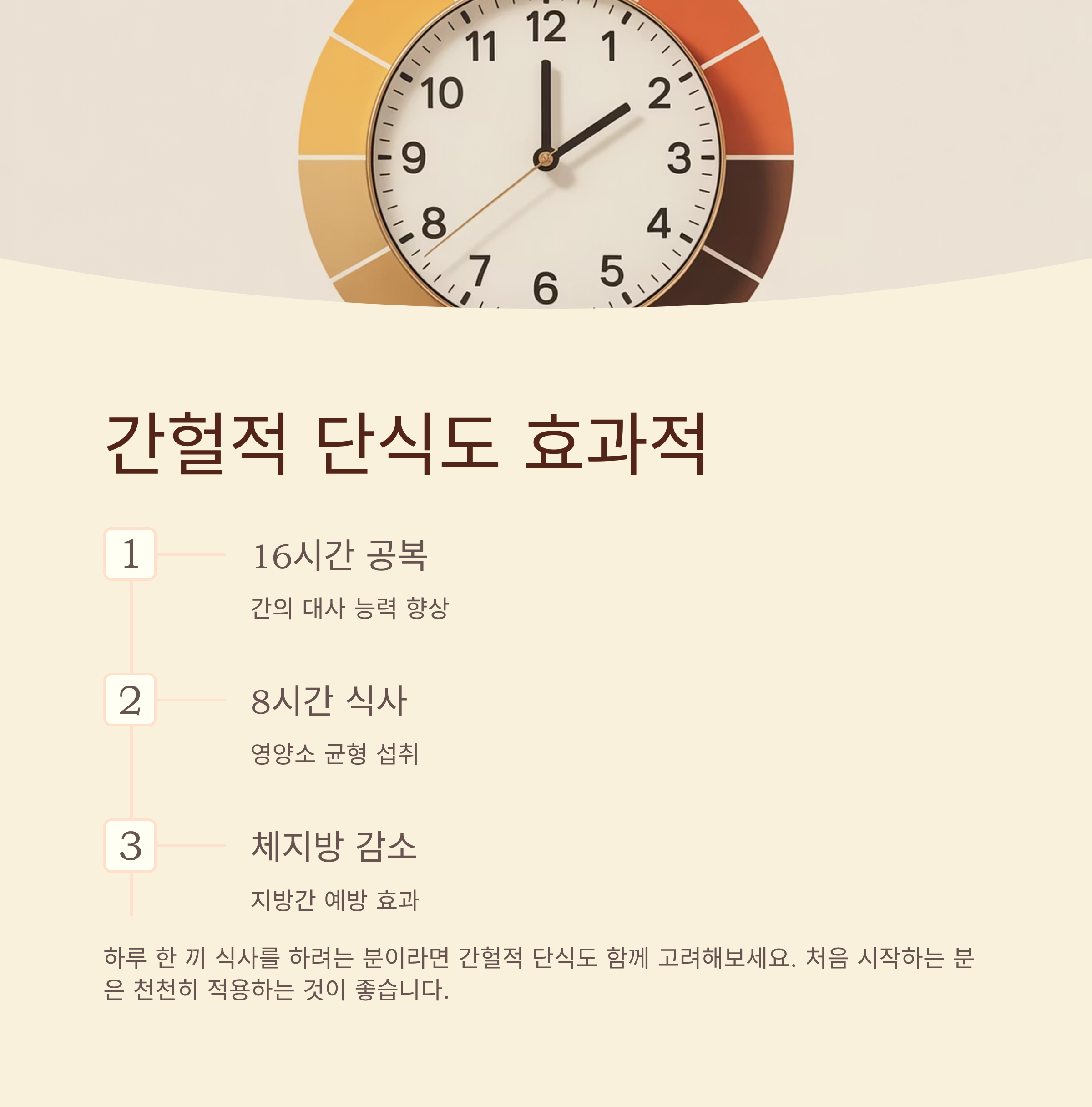 간헐적 단식(예: 16시간 공복 + 8시간 식사 가능 시간)도 함께 고려해보세요.