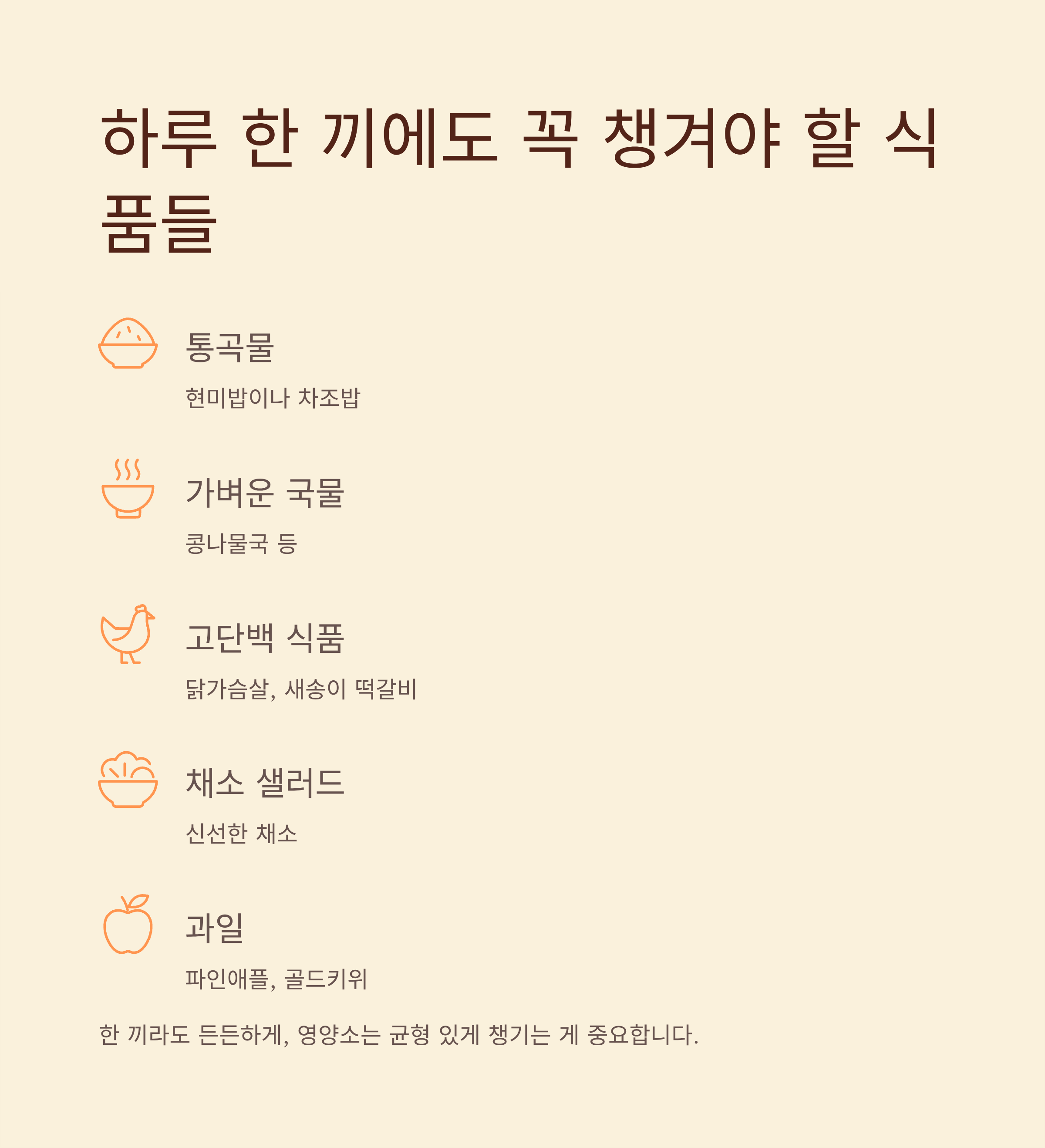 한 끼만 먹더라도 포만감에 속지 말고, 칼로리와 영양소 균형을 반드시 고려하세요.