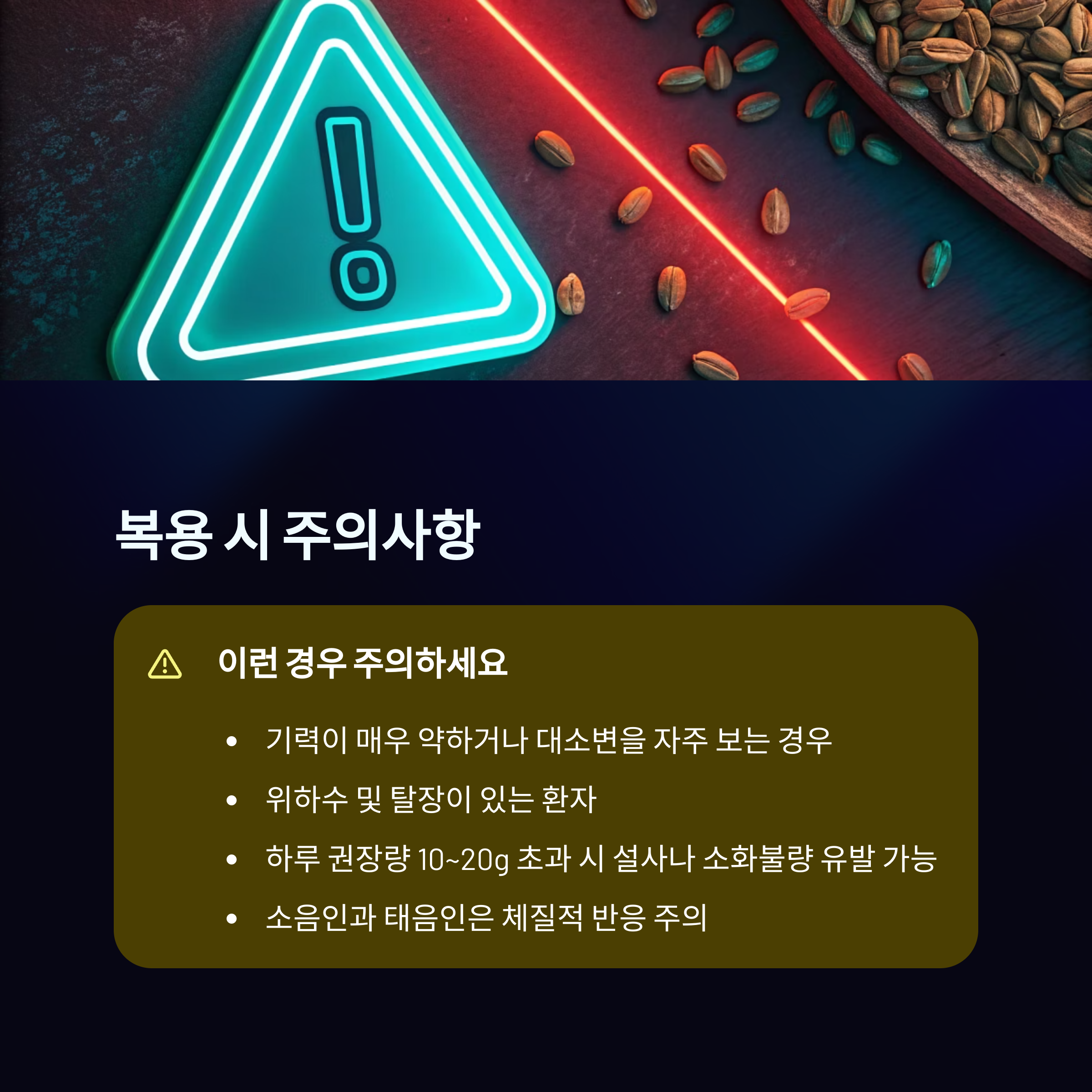 | 변비 | 차전자피 10g~20g/일 | 변비 해소, 장 기능 개선 |