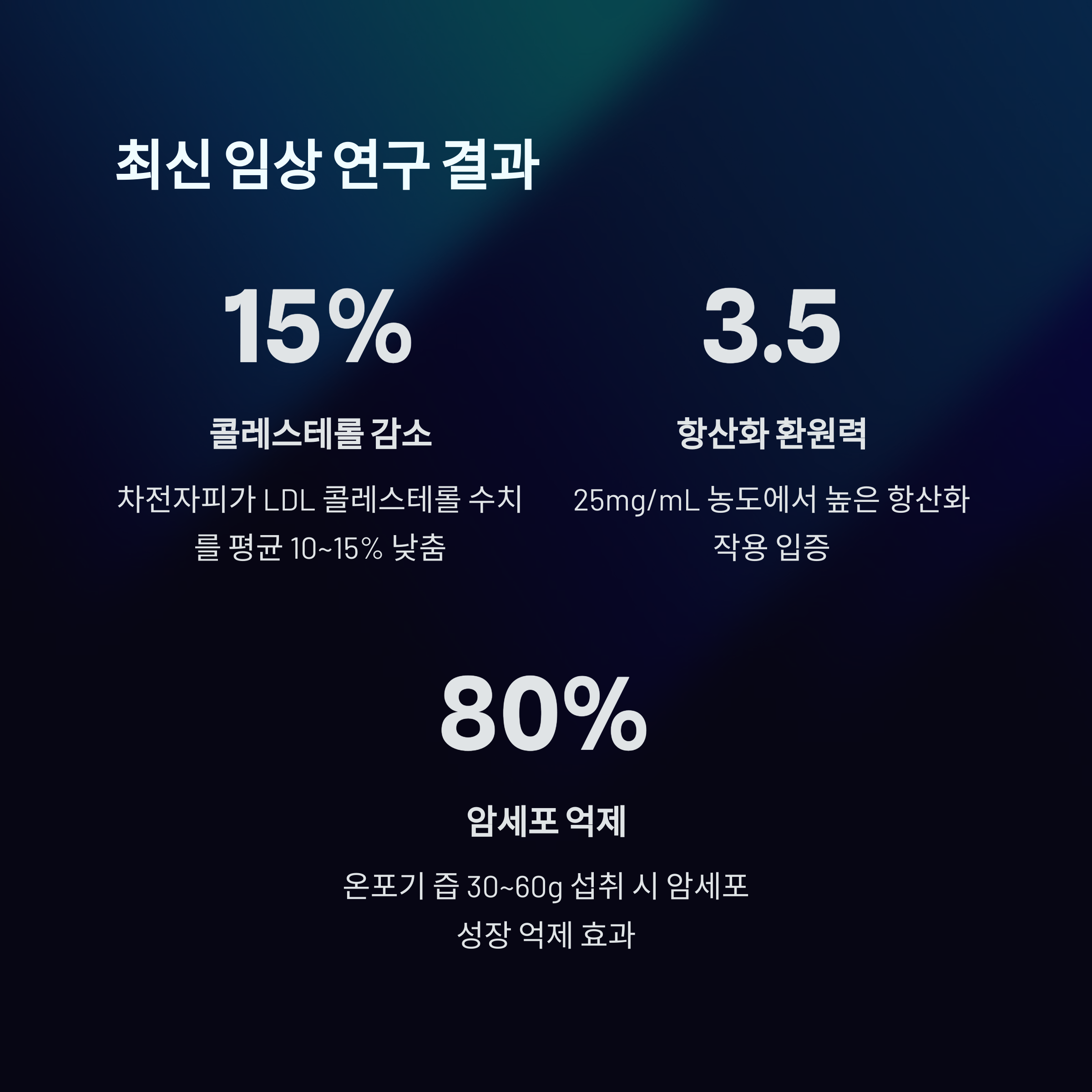 | 암세포 억제 | 온포기 즙 30g~60g | 암세포 성장 억제 80% |