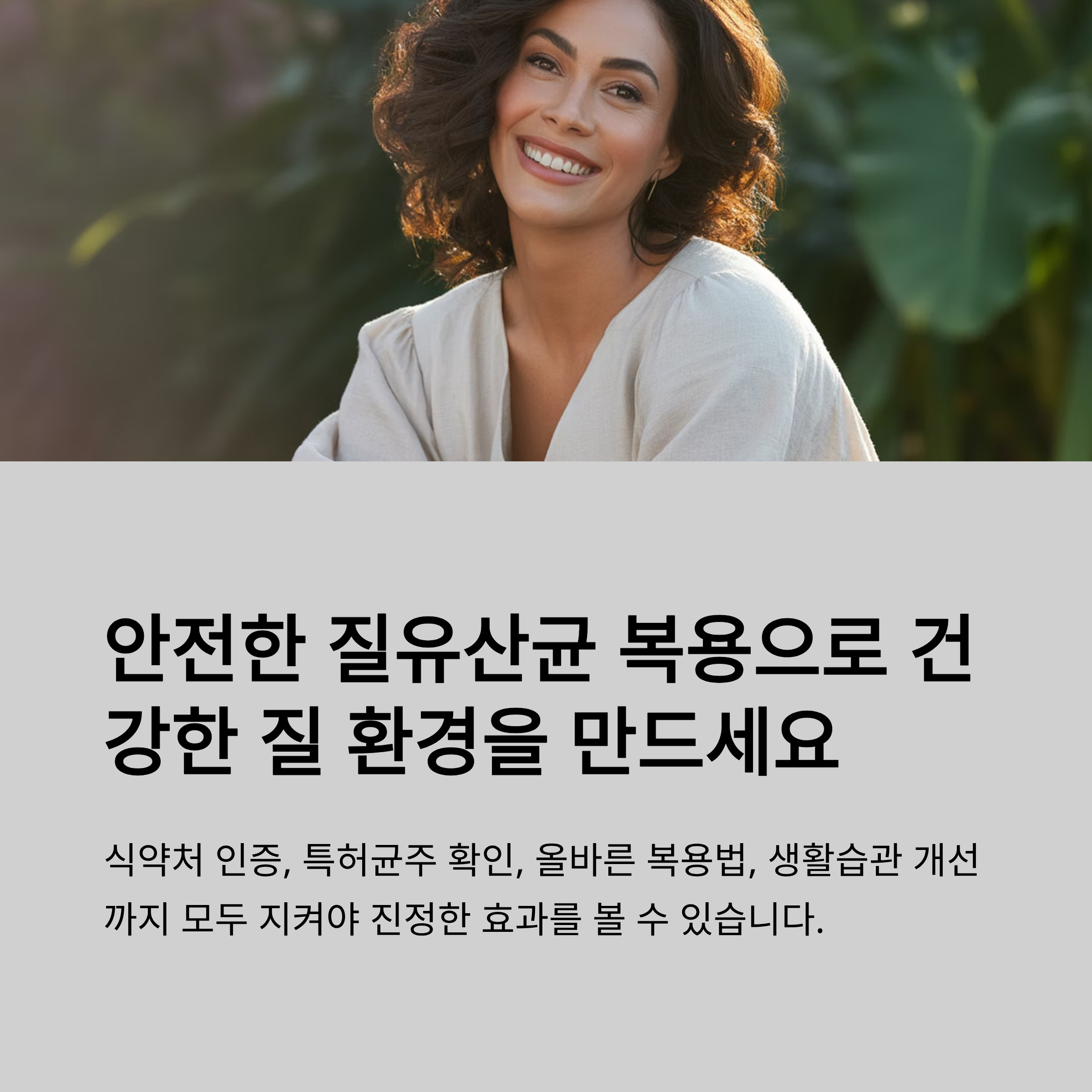 제품 선택부터 섭취 요령, 생활습관까지 총망라하여 질 건강을 지킬 수 있는 실질적인 정보를 알려드립니다.