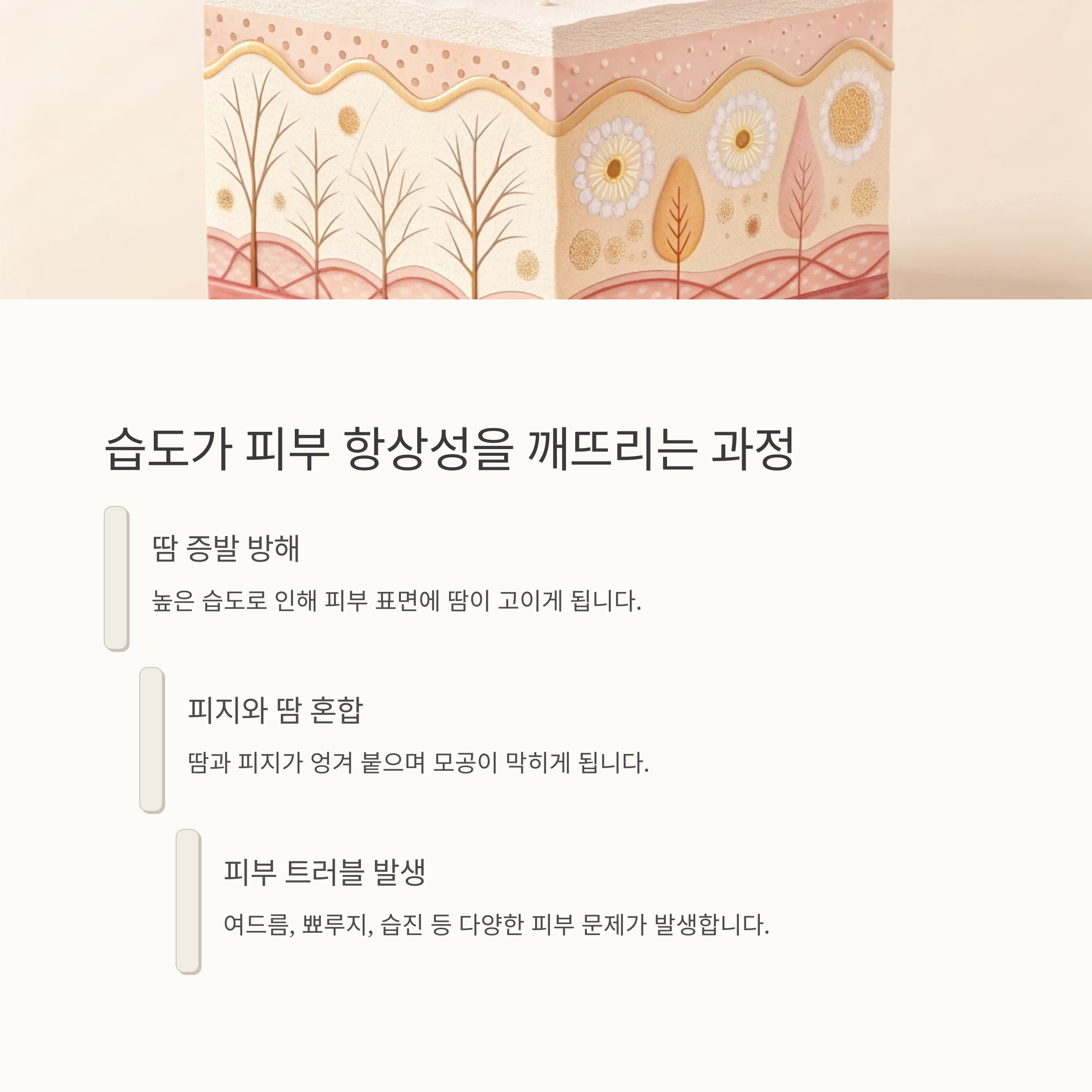| 고온다습 환경 | 모공 확장, 트러블 발생 |