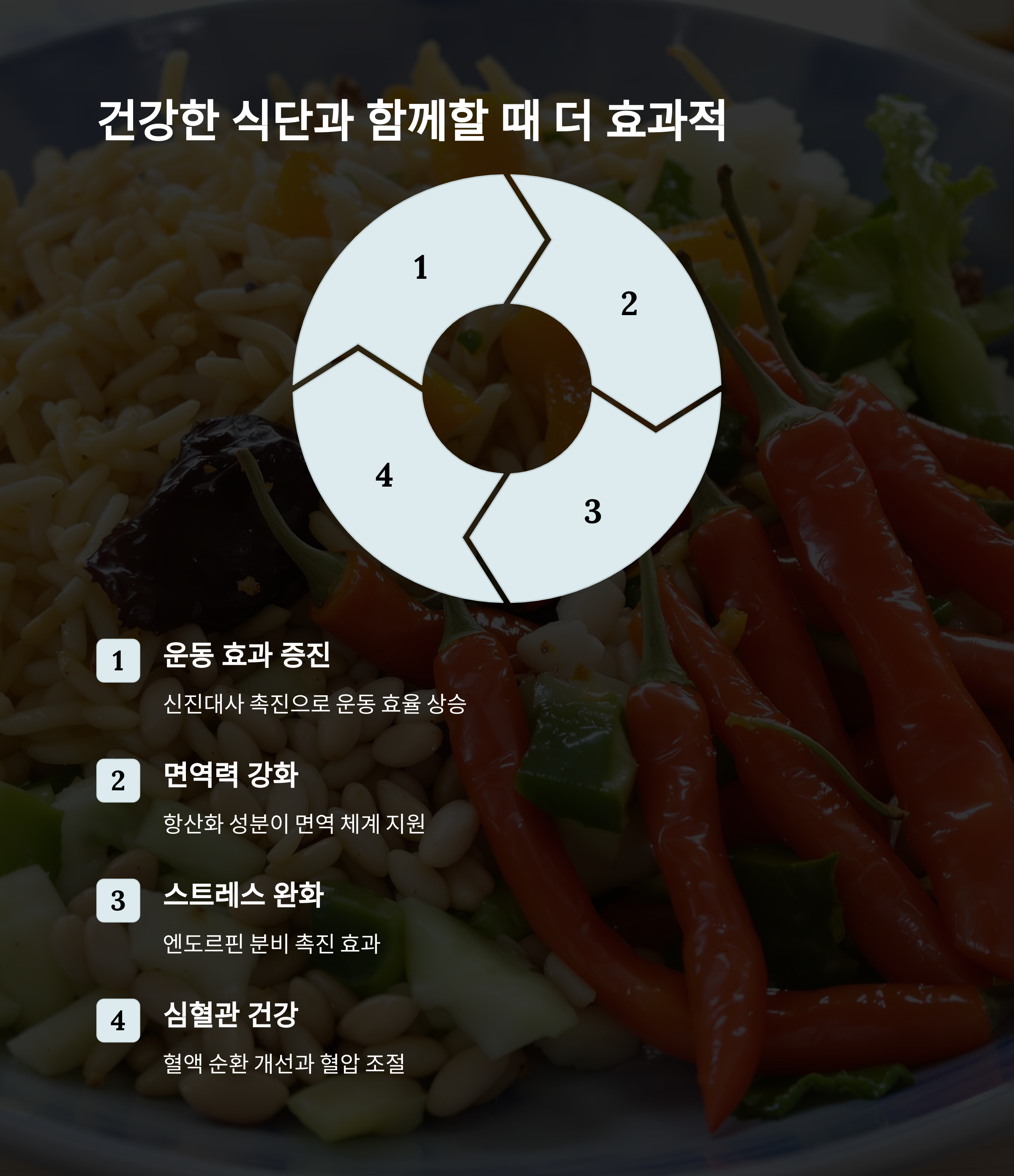 캡사이신은 대사 촉진 외에도 다양한 건강 혜택을 제공합니다. 단순히 다이어트를 넘어서, 우리의 몸 곳곳에 긍정적인 영향을 주는데요. 아래 리스트에서 대표적인 효과들을 정리해볼게요.