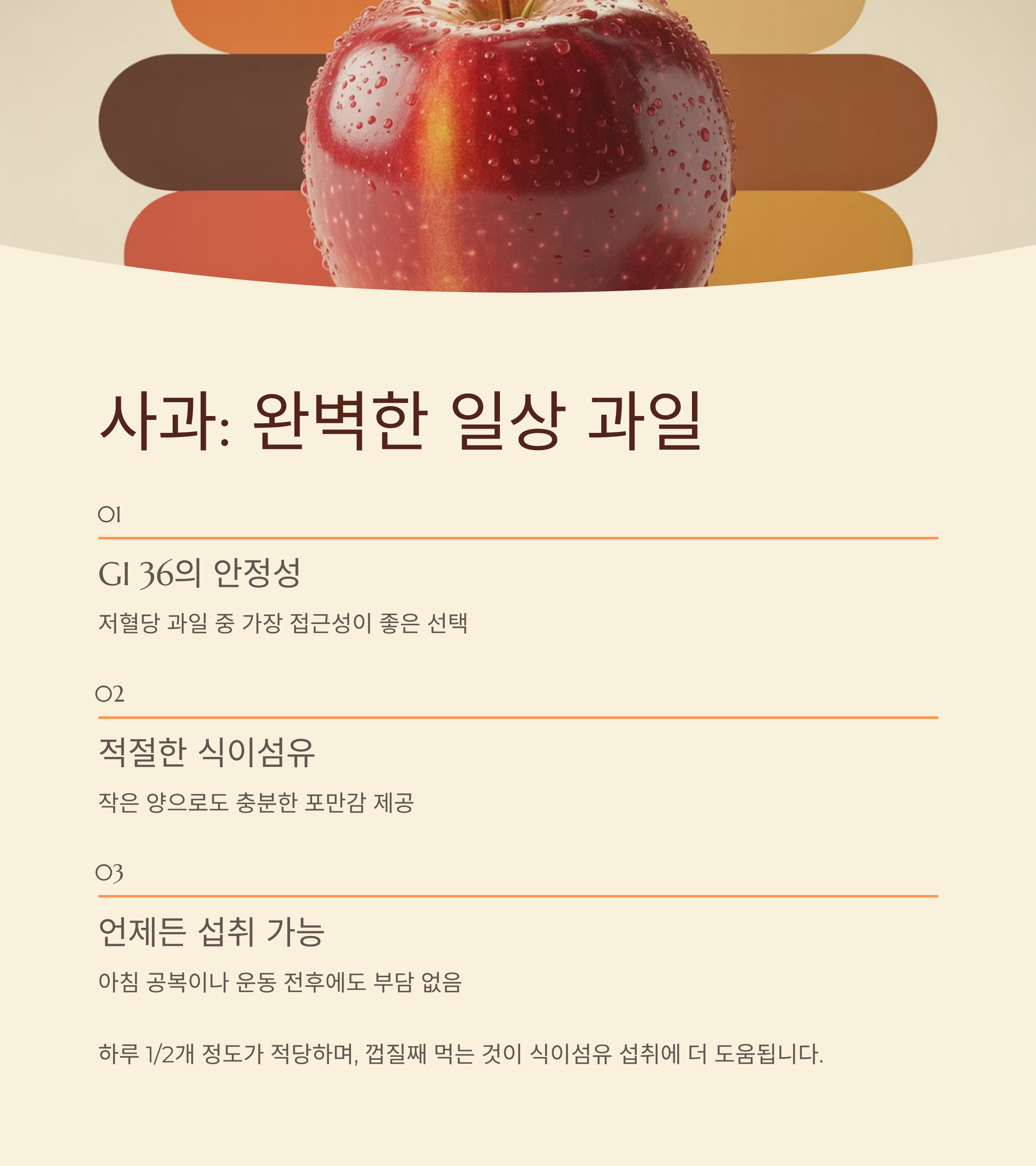 | 사과 | 36 | 포만감 유지, 꾸준한 에너지 공급 |