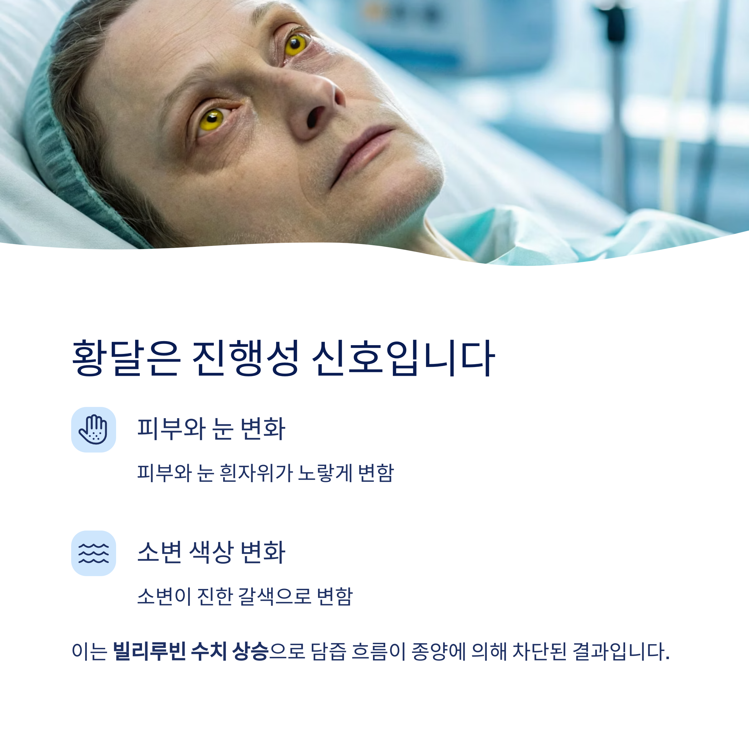 이는 담즙의 흐름이 종양에 의해 차단된 결과이며, 비교적 진행된 단계의 신호일 수 있습니다