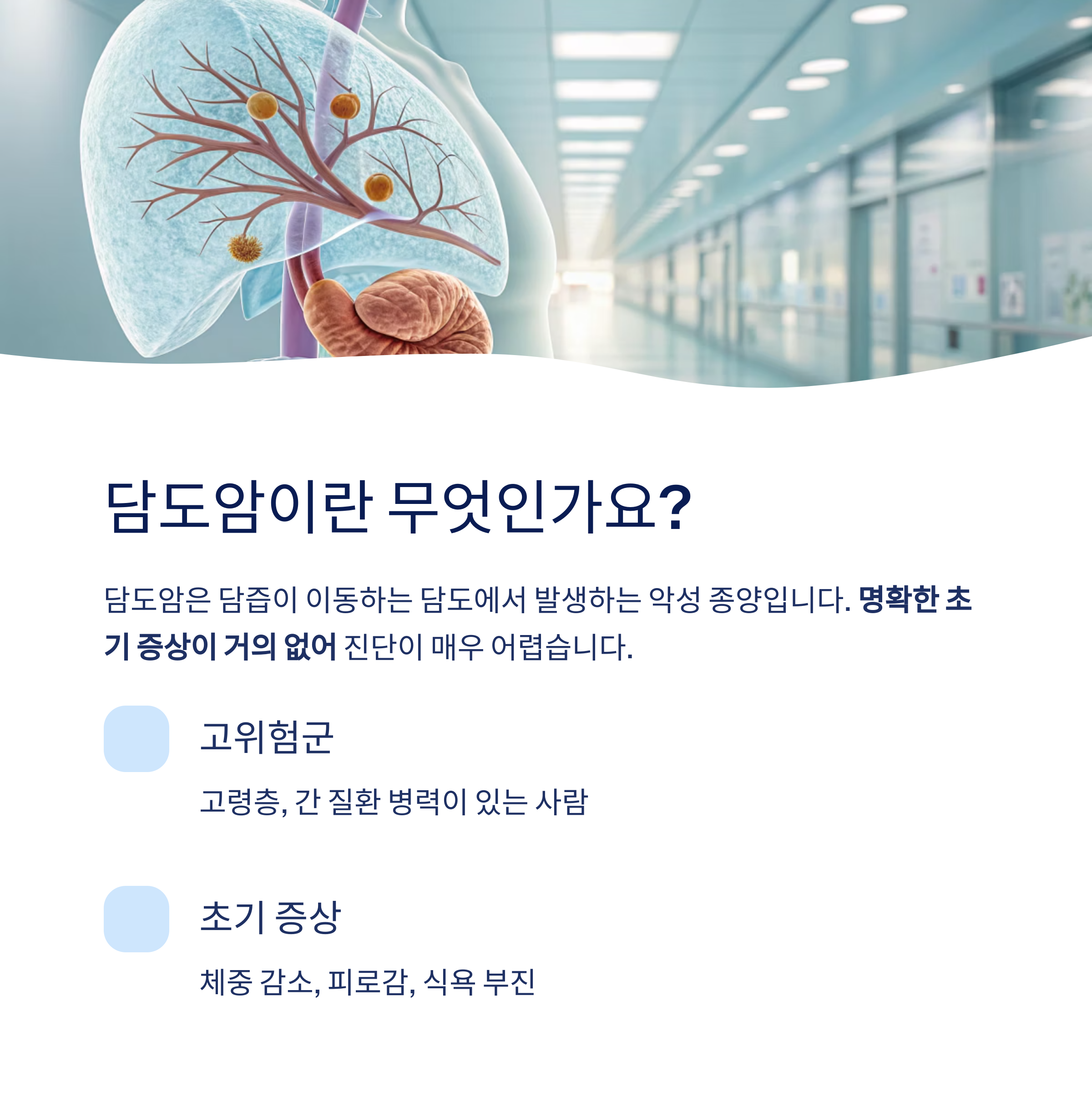 담도암은 조기 증상이 뚜렷하지 않아 '침묵의 암'이라 불리며, 진단이 늦어지는 경우가 많습니다