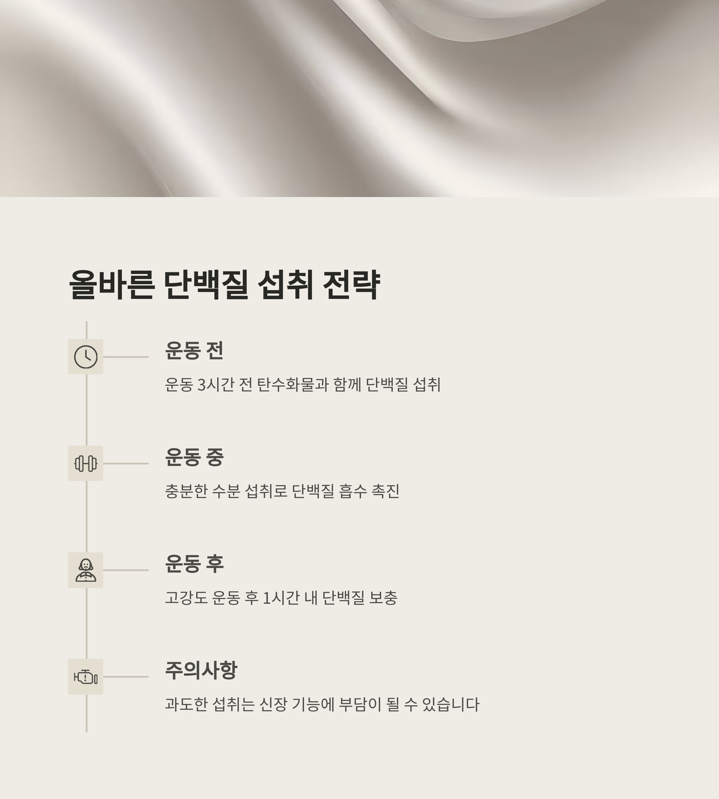 | 근육 성장 및 지방 연소 촉진 | 하루 식사에 25~30g 단백질 포함 | 체중 감량 및 면역력 향상에 도움 |