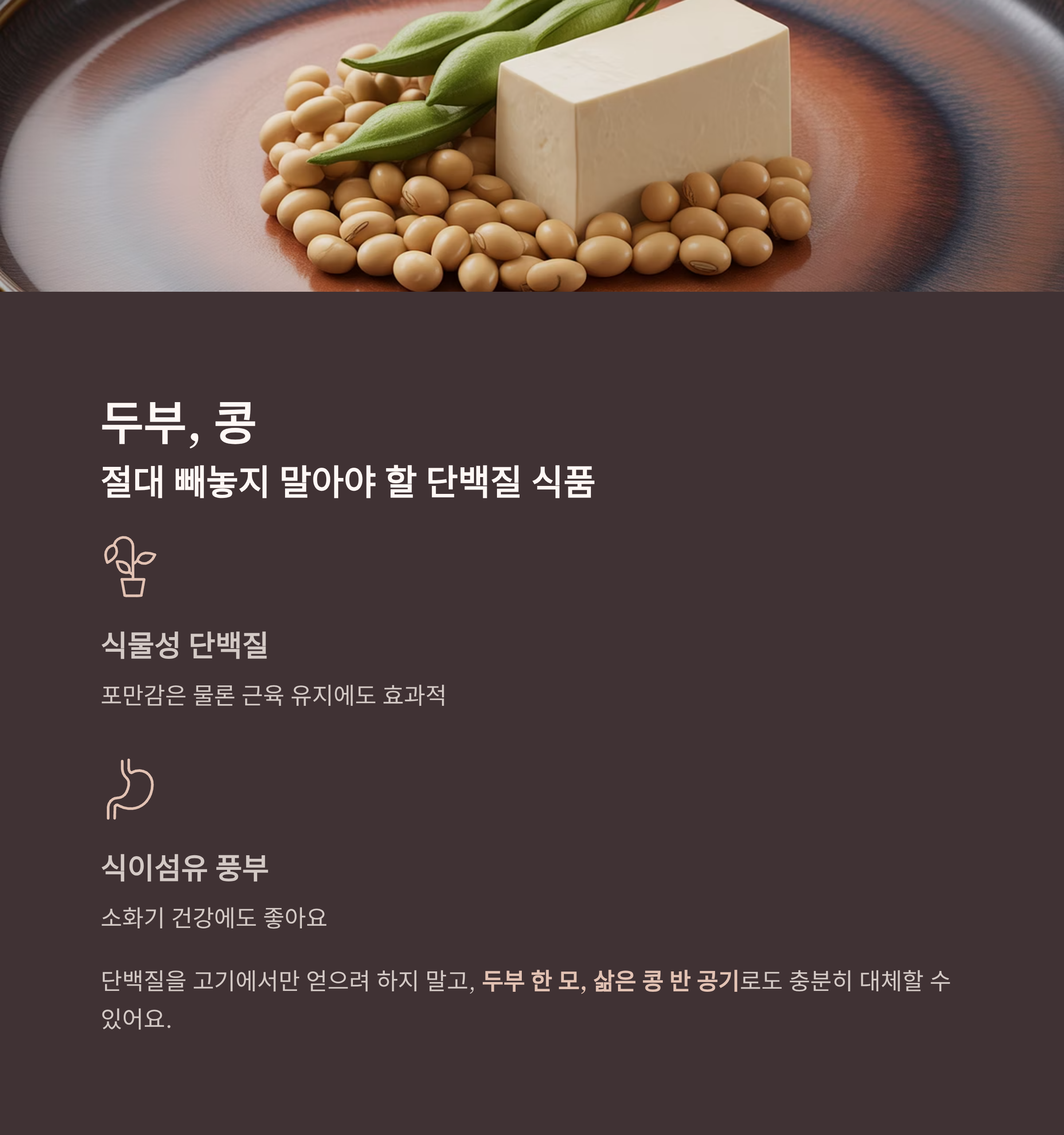 두부와 콩은 식물성 단백질의 대표주자예요.