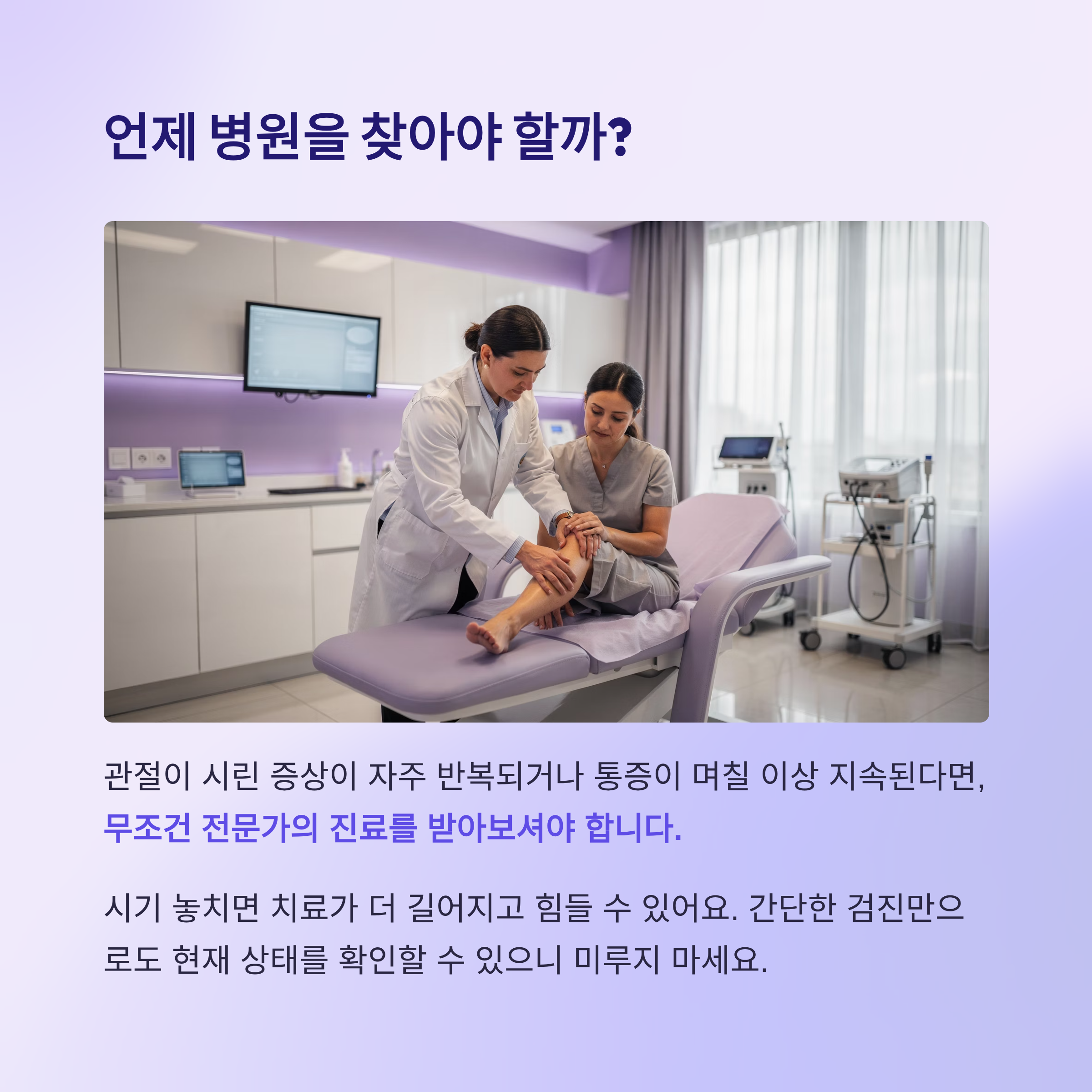간단한 검진만으로도 현재 상태를 확인할 수 있으니 미루지 마세요.