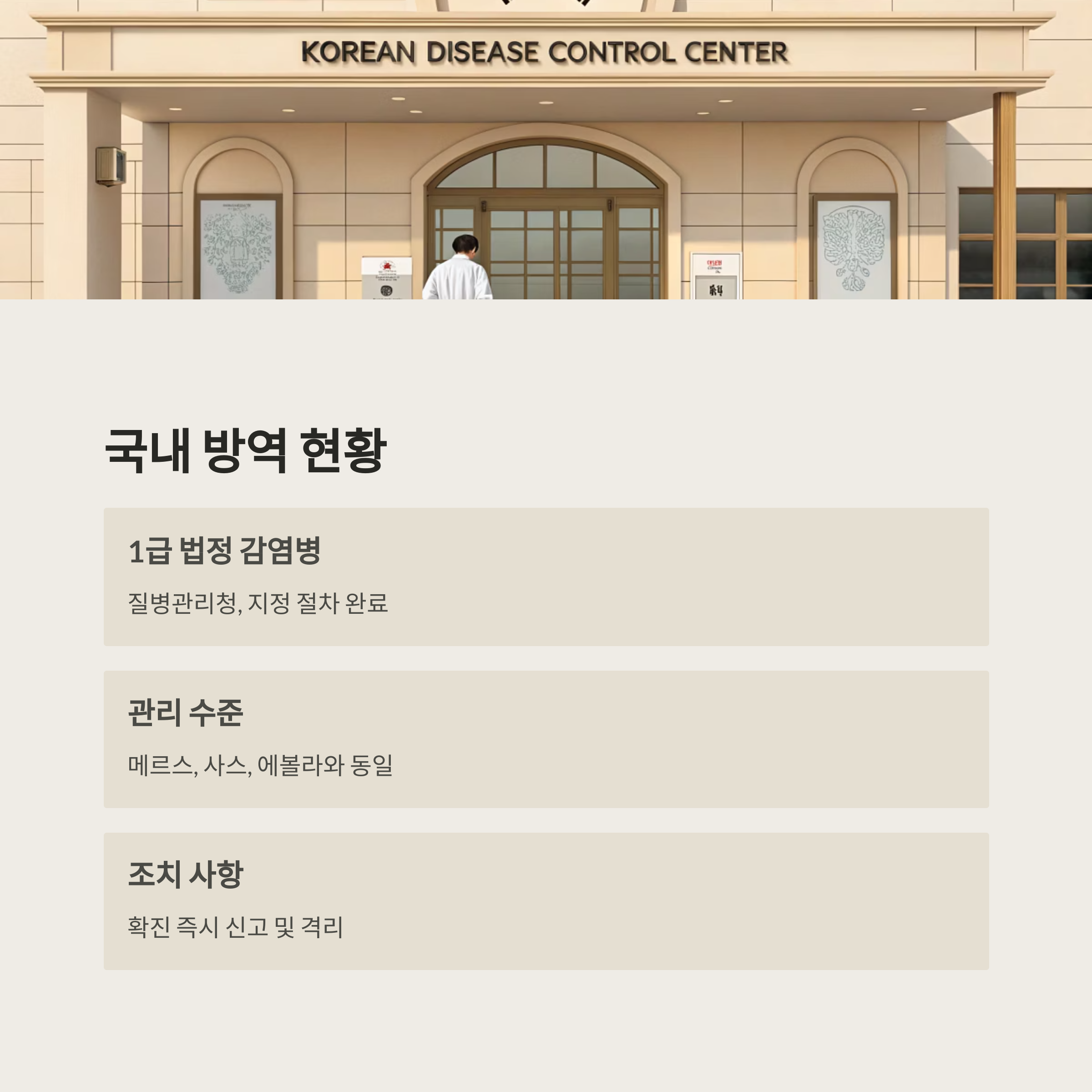 2025년 5월 기준, 국내에서도 1급 법정 감염병으로 지정되는 절차가 진행 중일 만큼