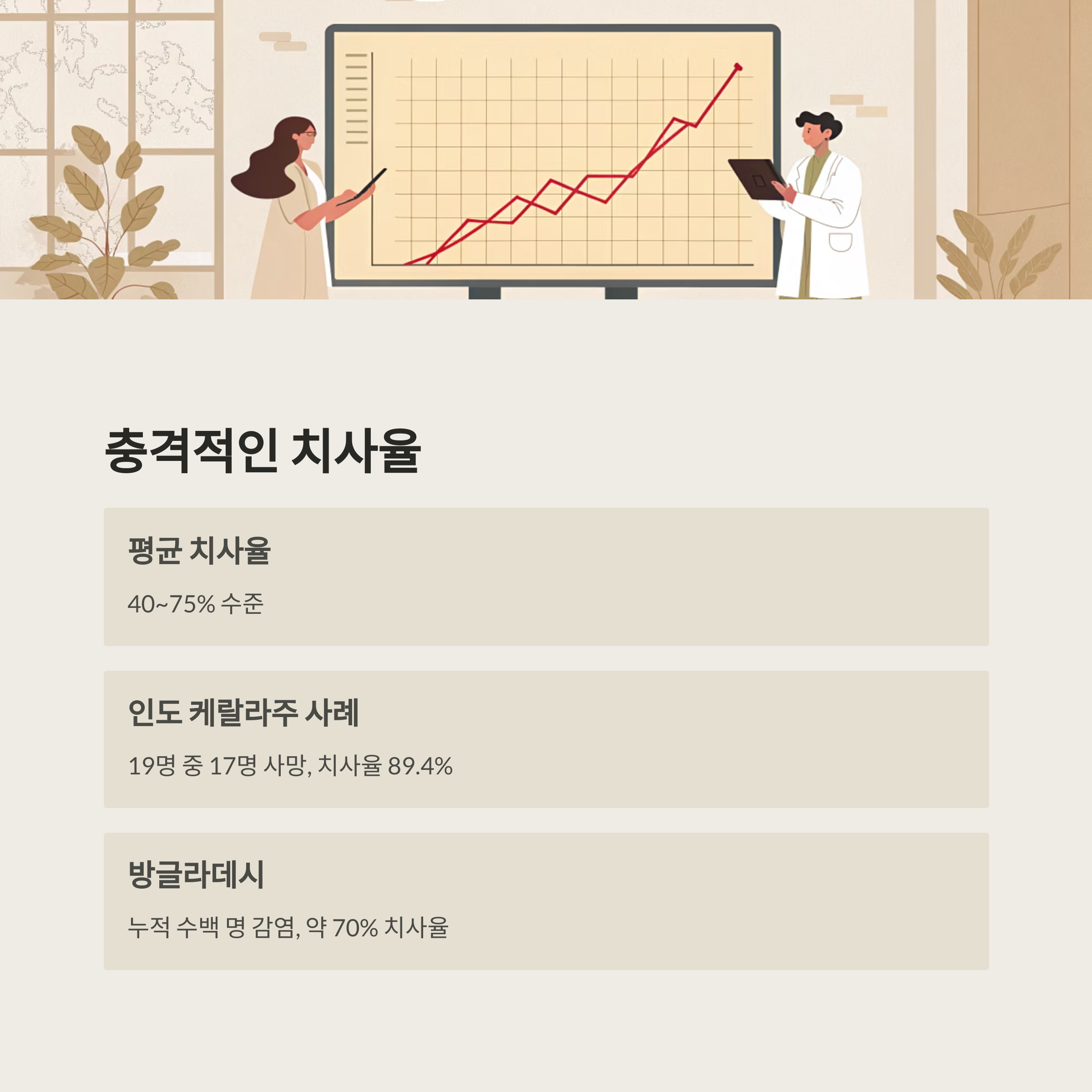 2018년 인도 케랄라주에서는 감염자 19명 중 17명이 사망하며