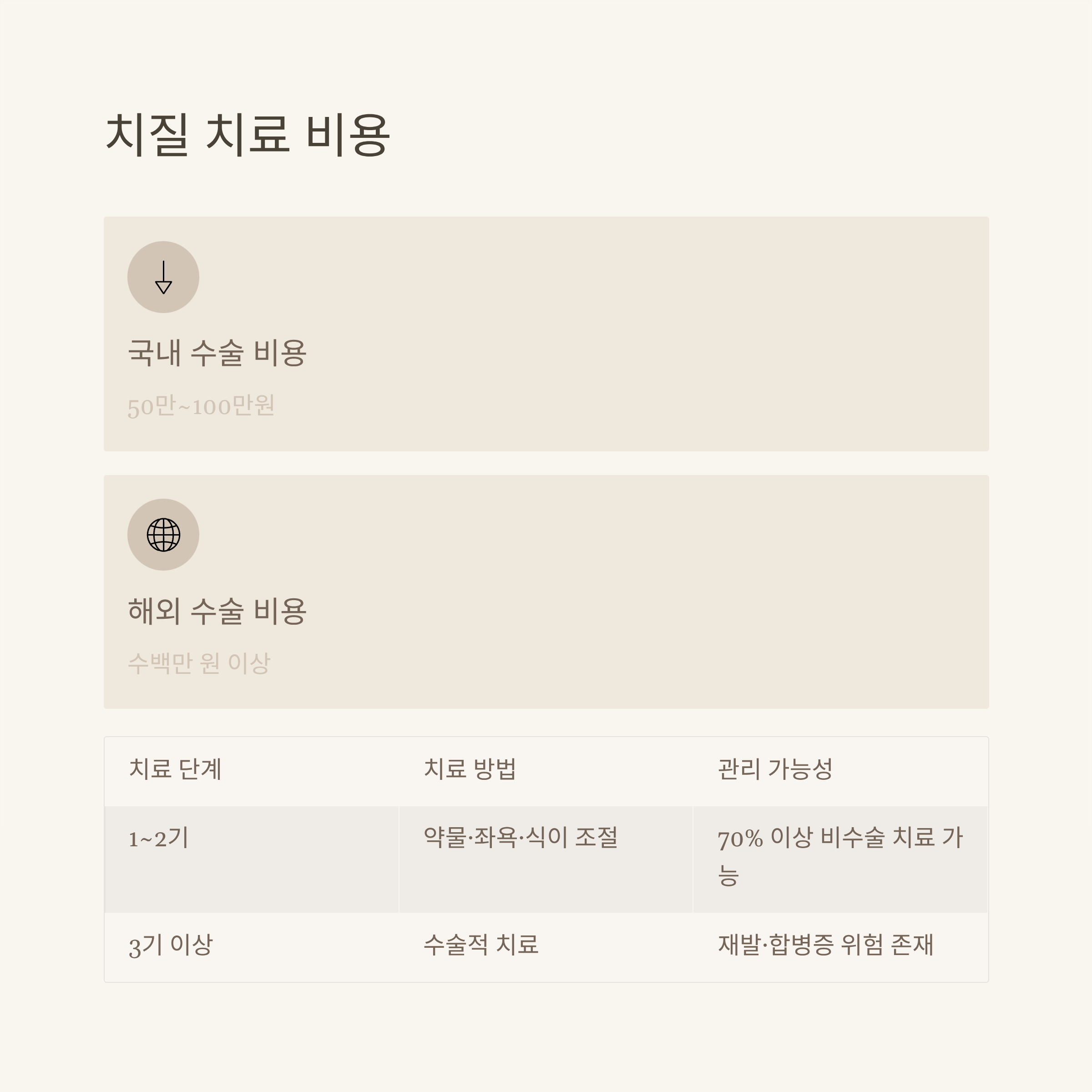 | 3기 이상 | 수술적 치료 | 재발·합병증 위험 존재 |