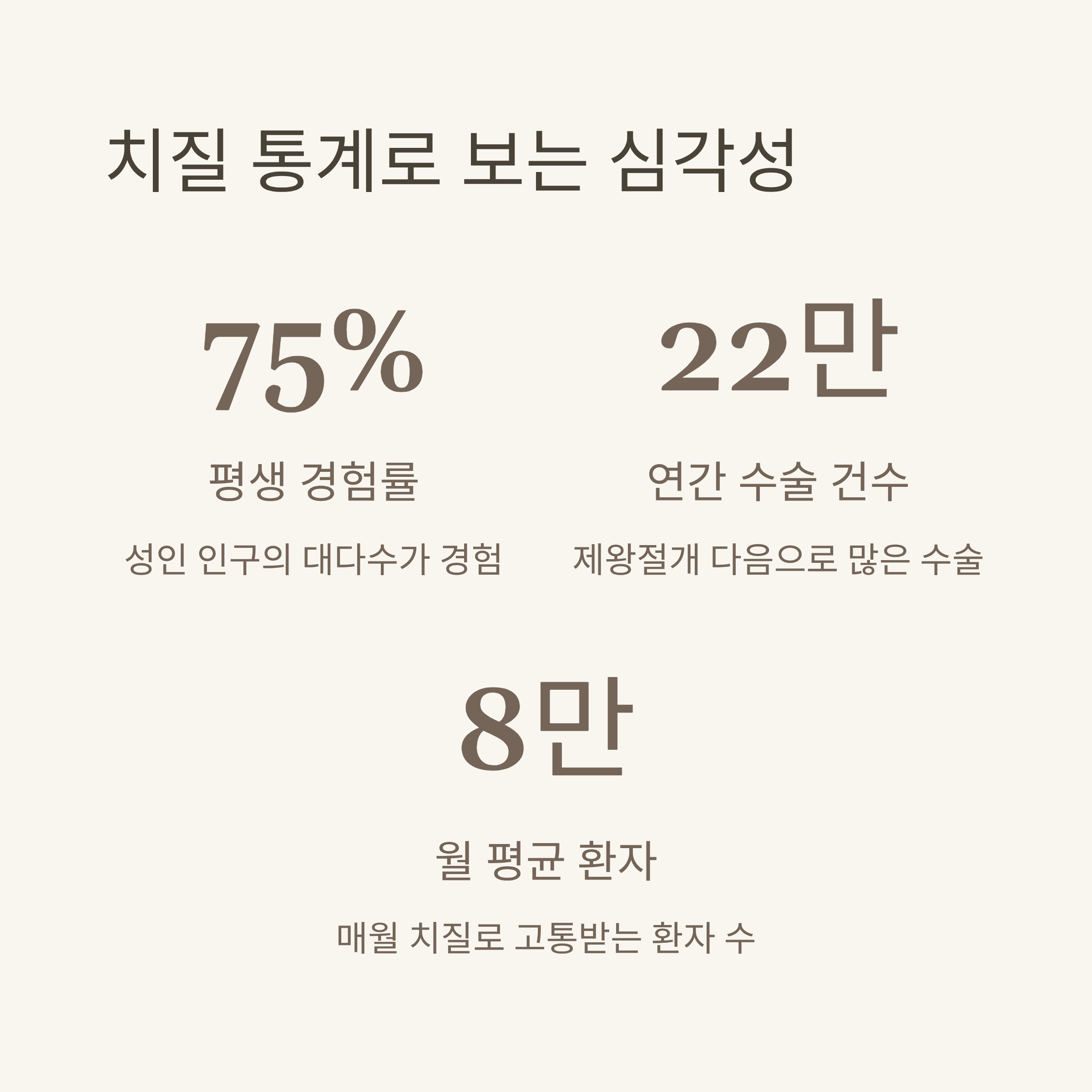 특히 수술 건수는 매년 22만 명 이상으로, 조기 치료를 놓치면