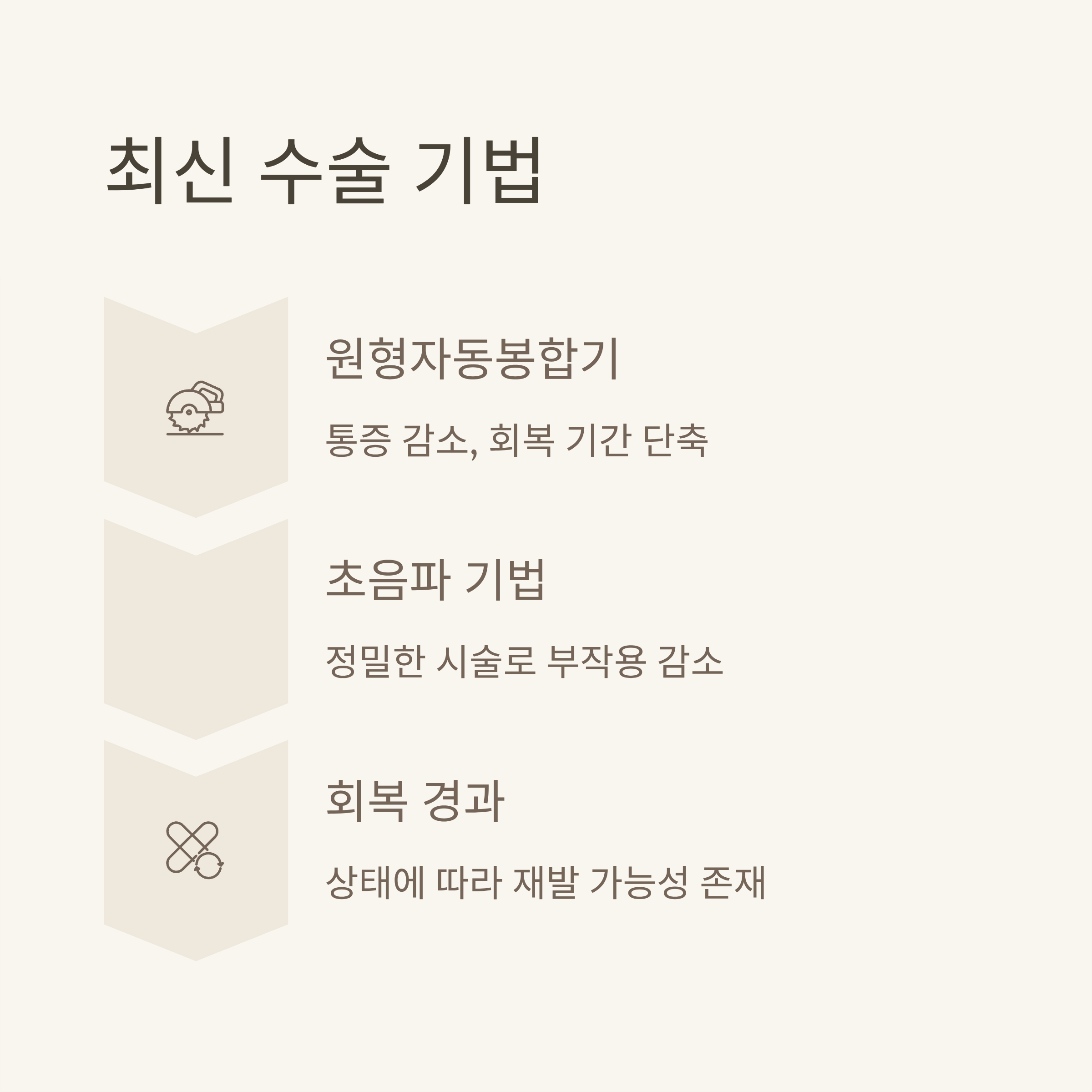 최근에는 원형자동봉합기, 초음파 기법 등을 활용해