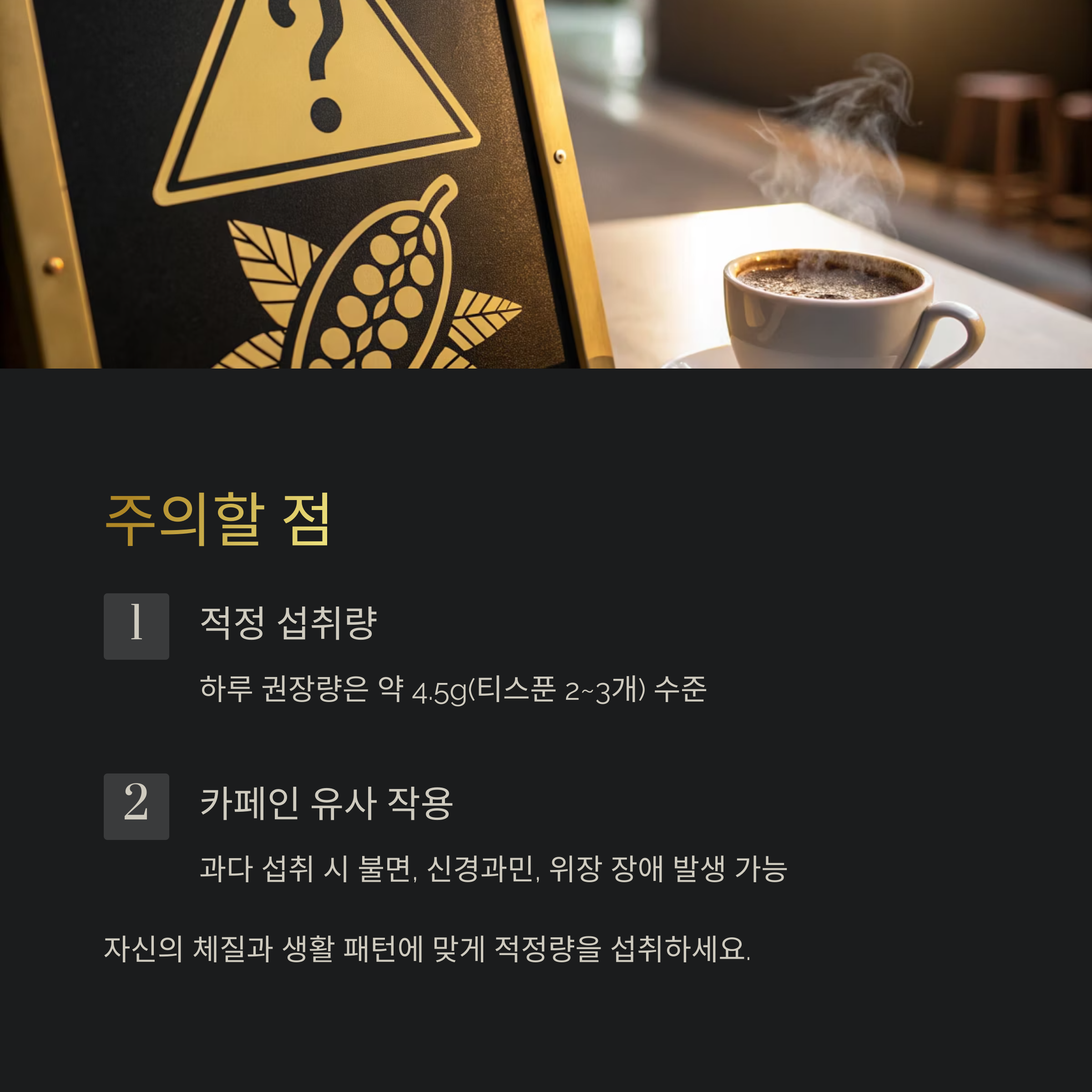주의할 점도 있다, 카페인 유사 성분에 유의하세요