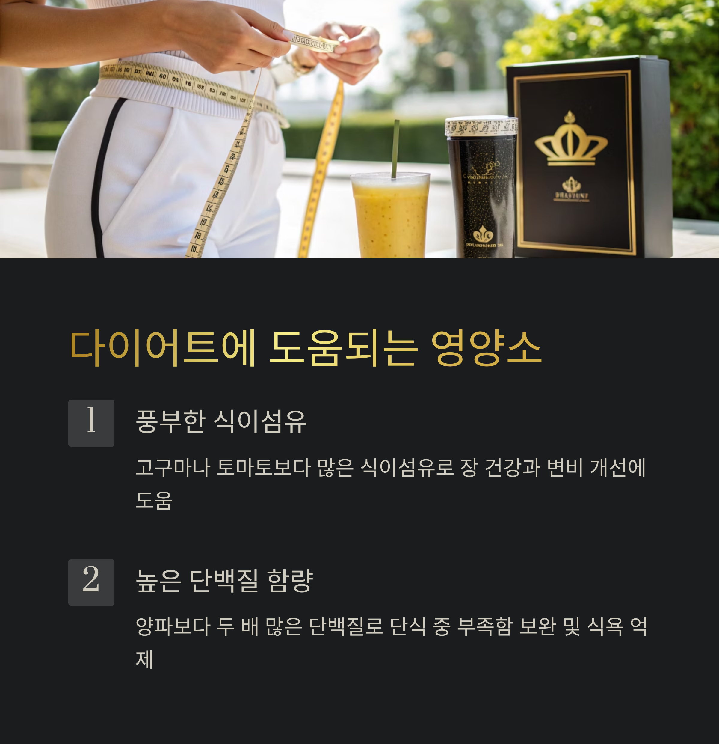 | 다이어트 도움 | 포만감 유지, 체지방 분해, 식욕 억제 |