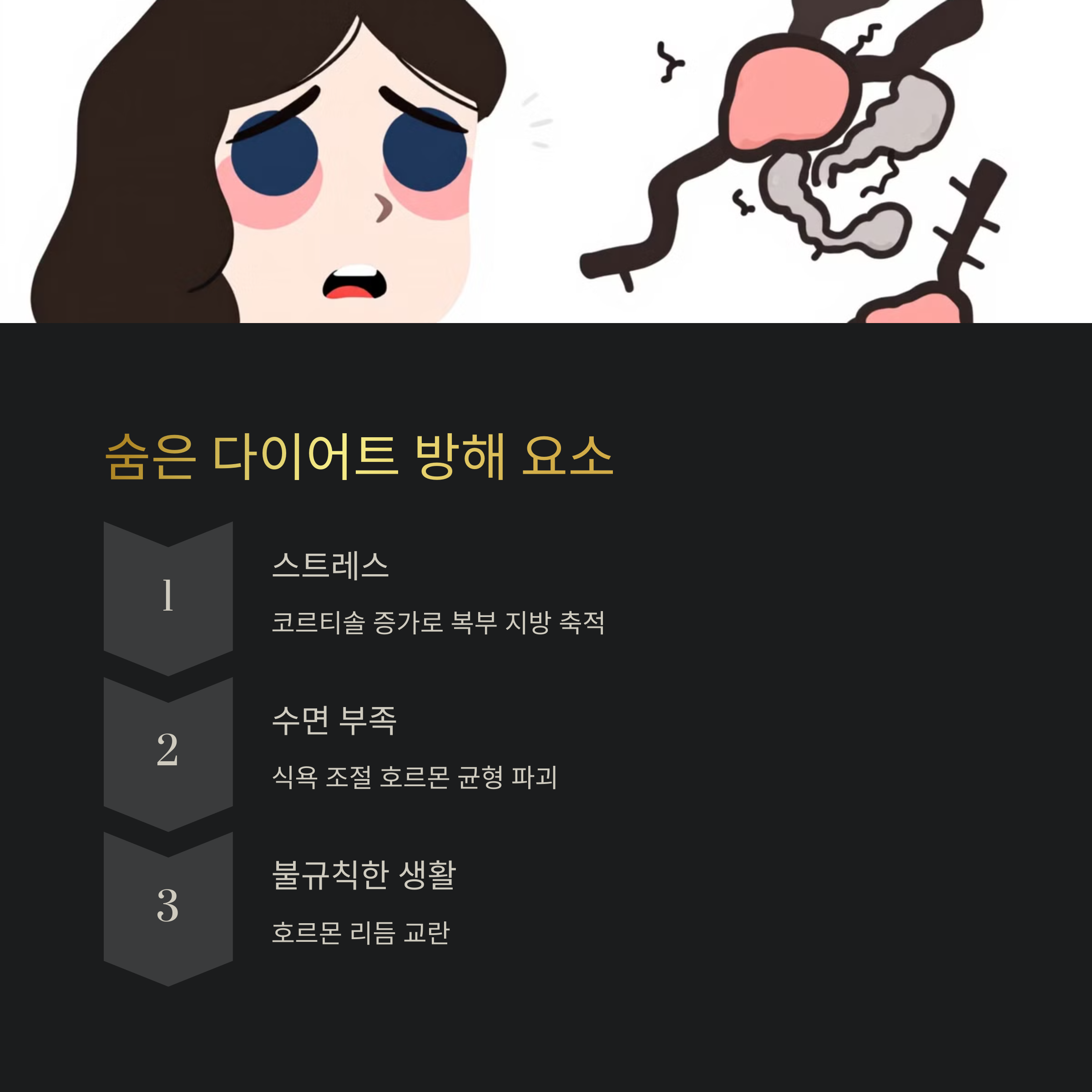 다이어트는 운동과 식단만으로 해결되는 것이 아닙니다. 스트레스와 수면도 중요한 요소입니다. 만약 충분한 수면을 취하지 못하거나 지속적으로 스트레스를 받는다면, 몸은 다이어트에 최적화된 상태가 될 수 없습니다.