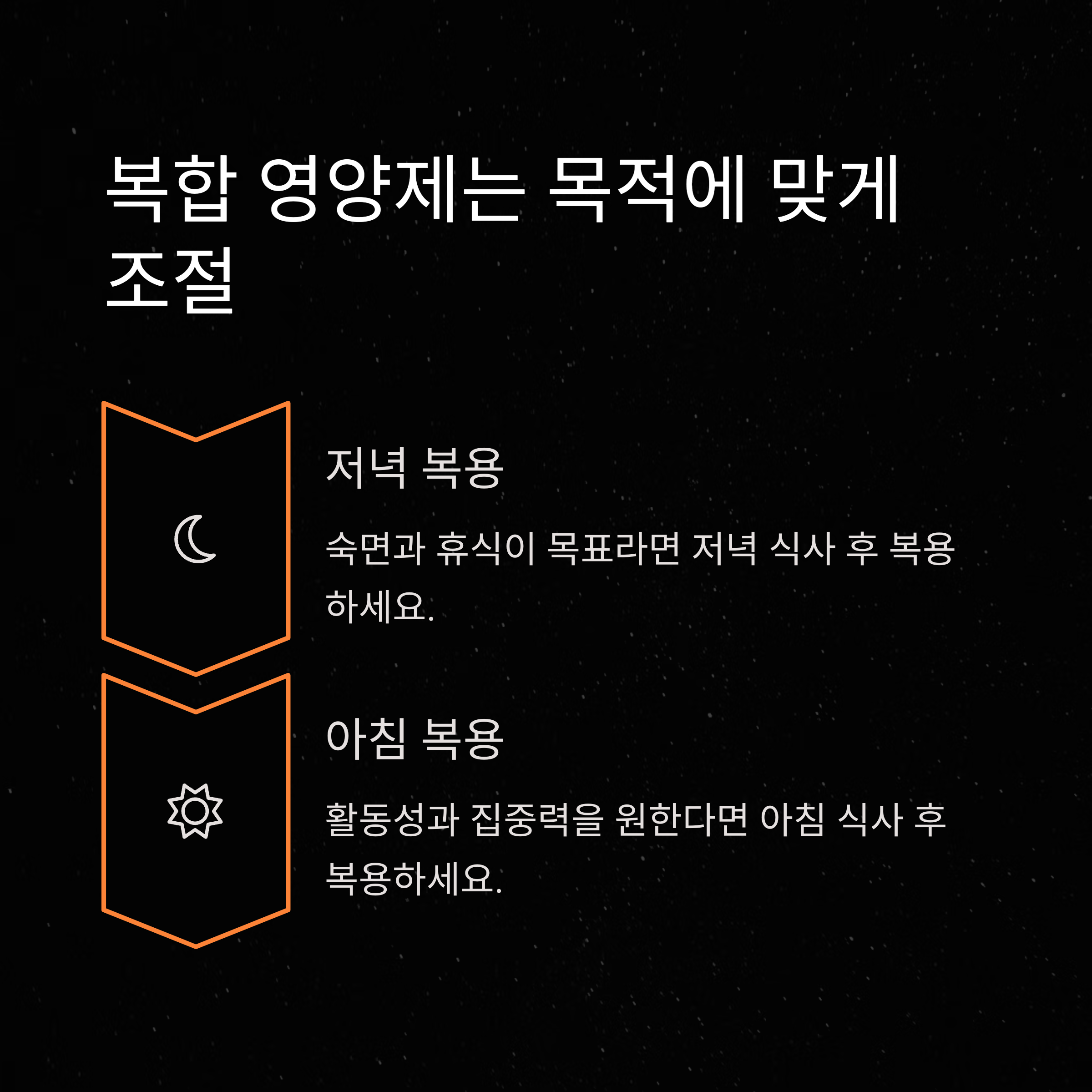 | 아침 식사 후 | 비타민 D, K2 | 40%~60% | 밤 복용 피함 |